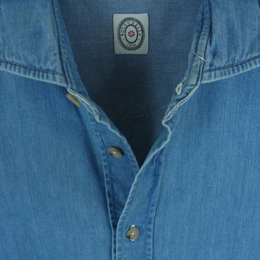 ボルゾネッラ ウエスタン デニム シャツ 長袖 コットン イタリア製 インディゴブルー系 S 39 15.5【中古】