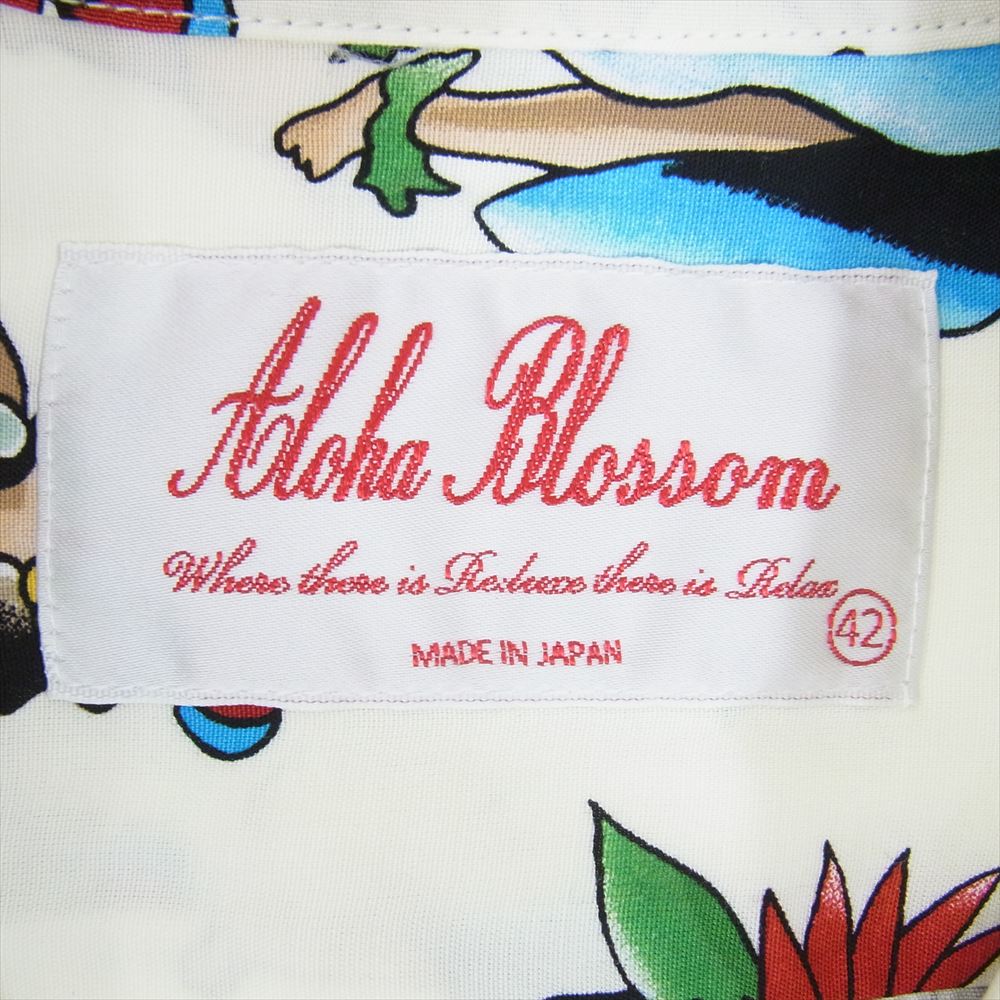 アロハブロッサム AB-0010010100 レーヨン 総柄 アロハシャツ 半袖 ホワイト系 42【極上美品】【中古】