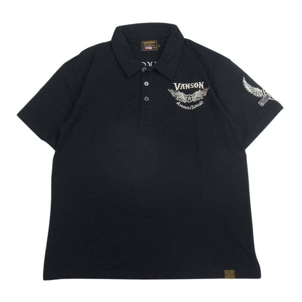 VANSON バンソン ロゴ刺繍 ウィング メタルボタン 半袖 ポロシャツ ブラック系 XL【美品】【中古】