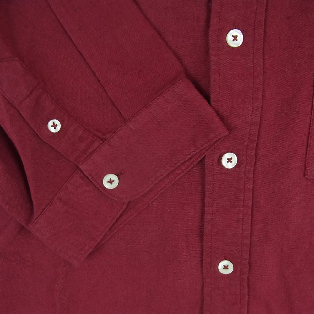 アミ 国内正規品 AMI PARIS アミパリス リネンコットン ボタンダウン 半袖 シャツ ワインレッド系 39【中古】