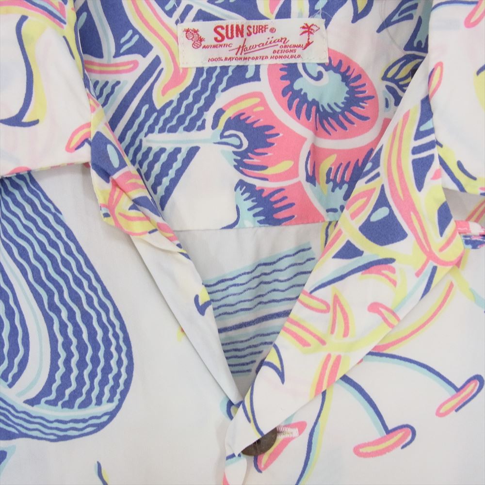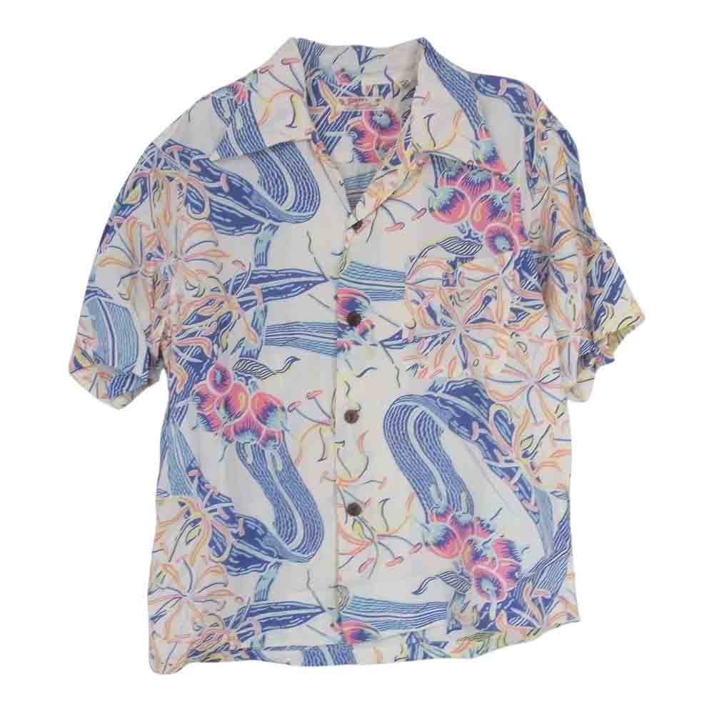 SUN SURF サンサーフ M32864 M品番 ハワイアン 総柄 半袖 アロハ シャツ ブルー系 S【中古】