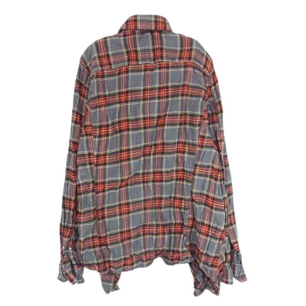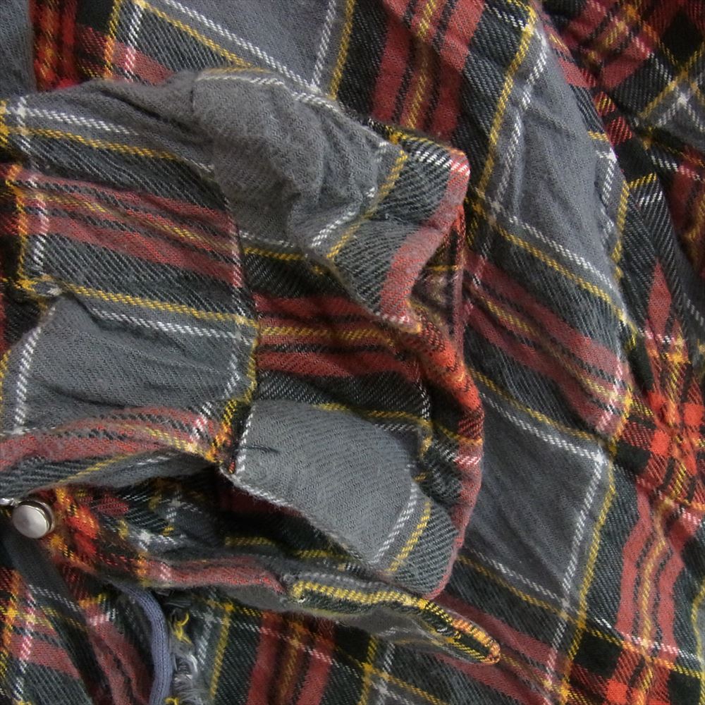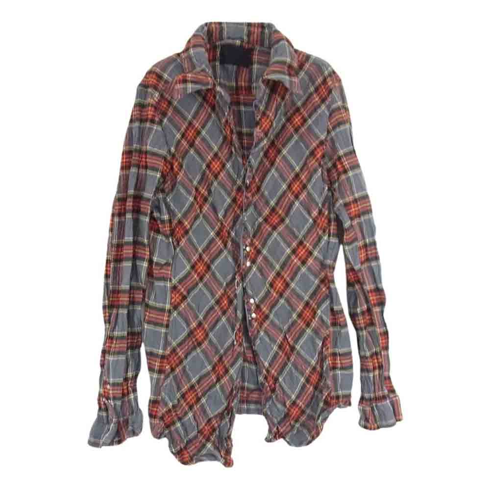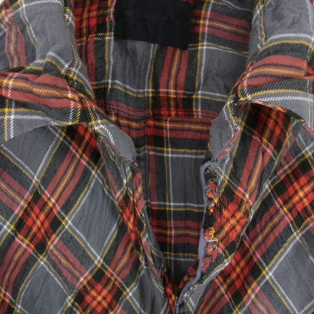 junhashimoto ジュンハシモト 1062110005 CHECK BIAS SHT 日本製 シワ加工 バイアス 切替 フロントフック コットン チェック 長袖 シャツ グレー系 3【中古】