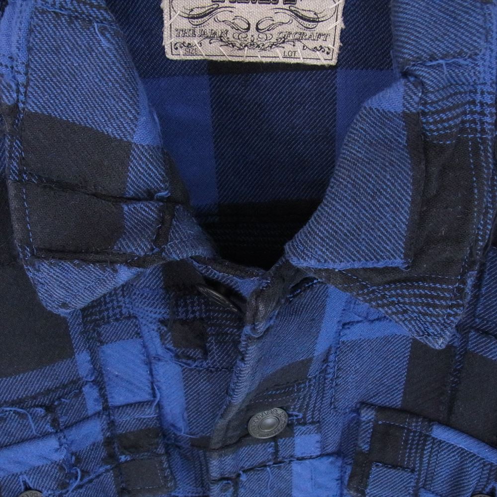 TMT ティーエムティー 21AW BUFFALO-OMBRE PLAID OVERLAPPED SHIRTS JACKET パッチワーク チェック ネルシャツ ブロックチェック 長袖 シャツ ブルー系 L【中古】