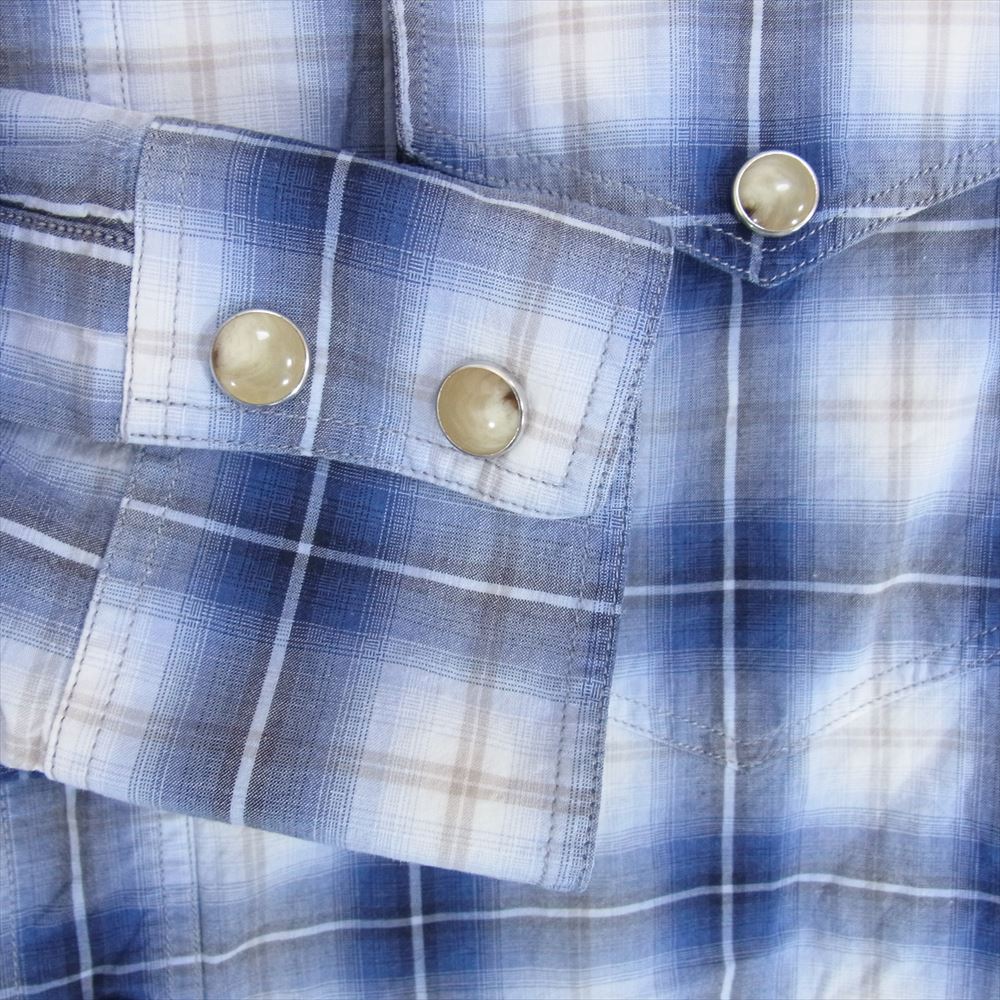 SAINT LAURENT サンローラン 373285 Y790H エディ期 チェック柄 スナップボタン ウエスタン 長袖 シャツ ブルー系 40【中古】