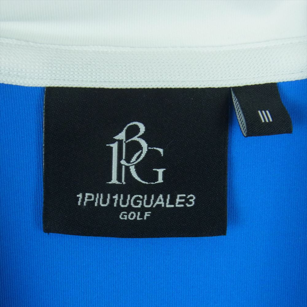 1piu1uguale3 ウノピュウノウグァーレトレ GDT011 POE417 ADP GOLF ゴルフ S/S MOCK NECK モックネック スモールロゴ 半袖 Tシャツ カットソー ブルー系 ホワイト系 TURQOISE/WHITE 3【美品】【中古】