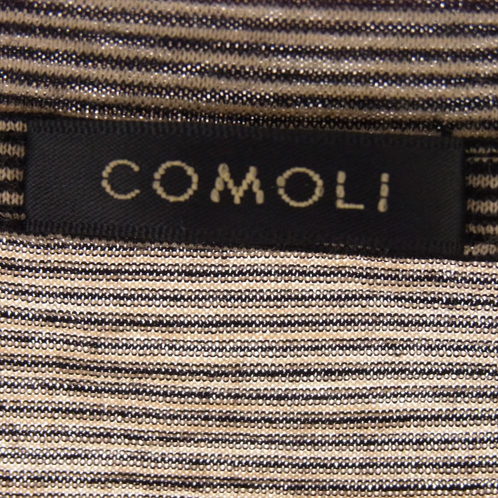 COMOLI コモリ 22SS V01-05007 ウール天竺 クルーネック ボーダー 半袖 ポケット Tシャツ ブラウン系 3【中古】