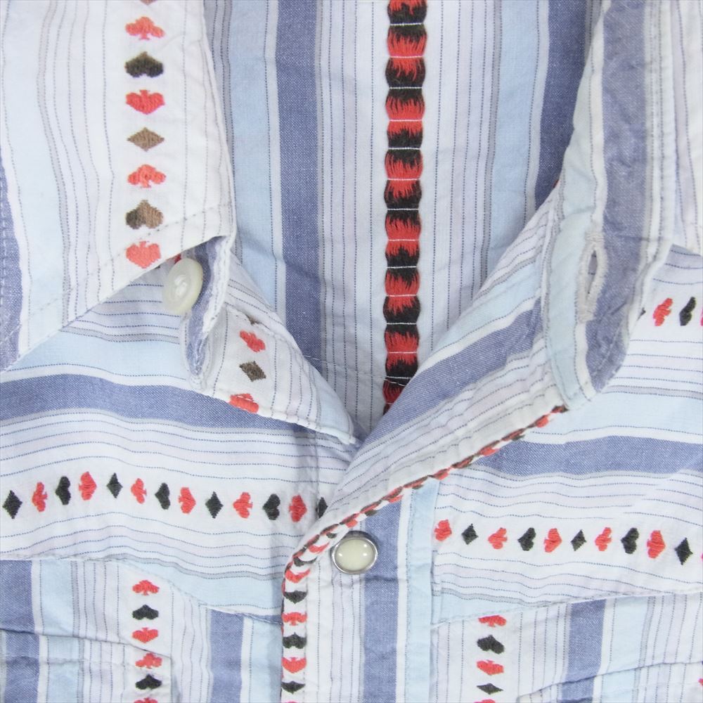 SUGAR CANE シュガーケーン トランプ 刺繍 エンブロイダリー マルチストライプ 長袖 ウェスタン シャツ ブルー系 M【中古】
