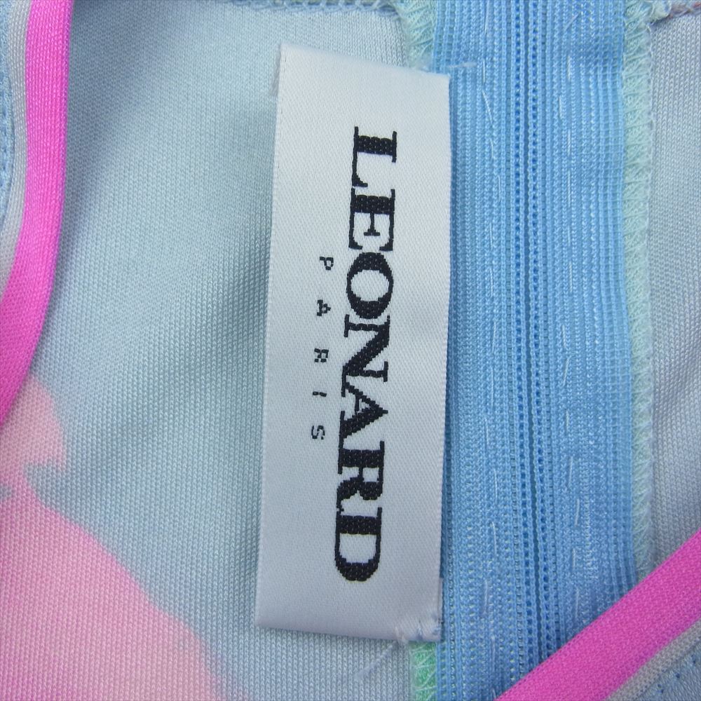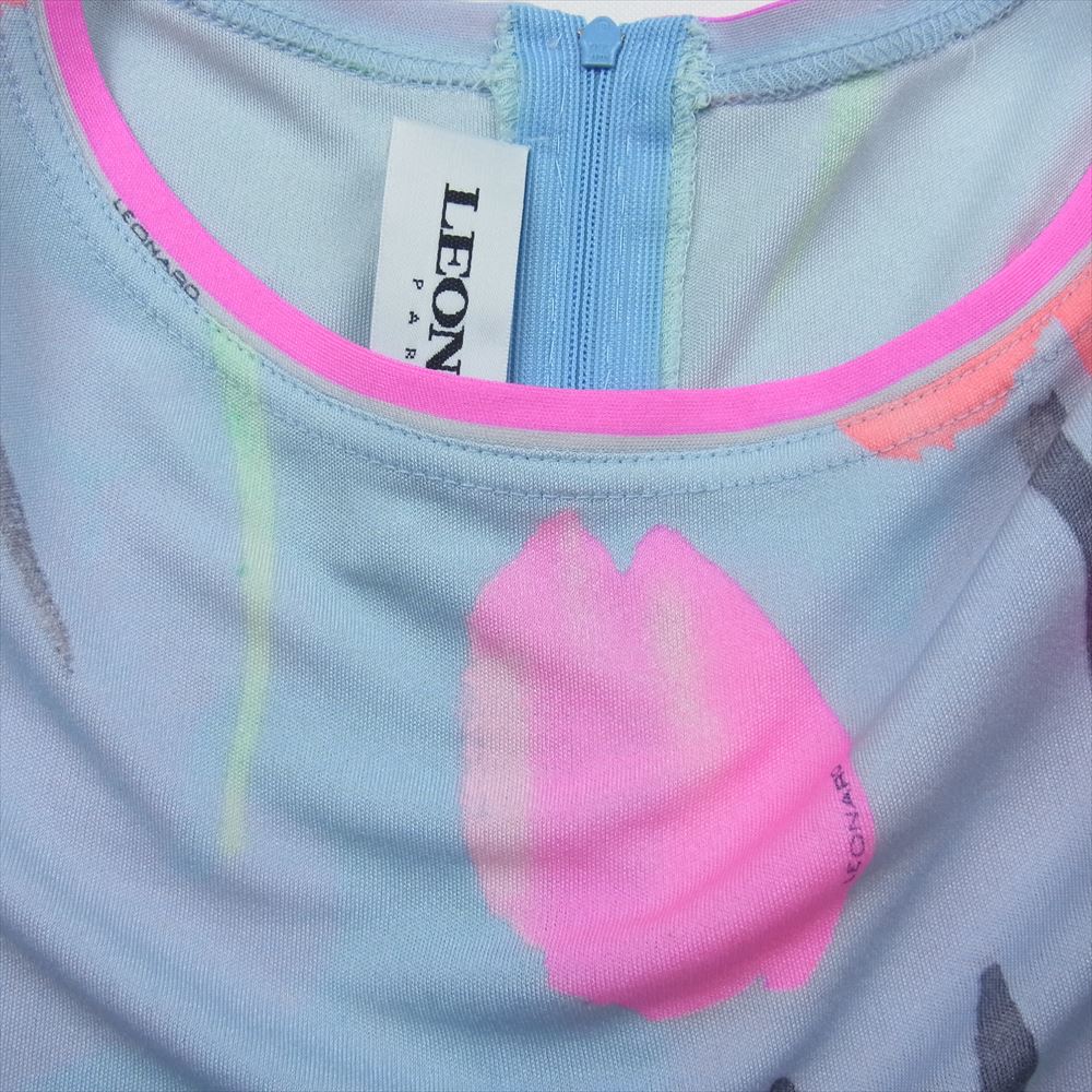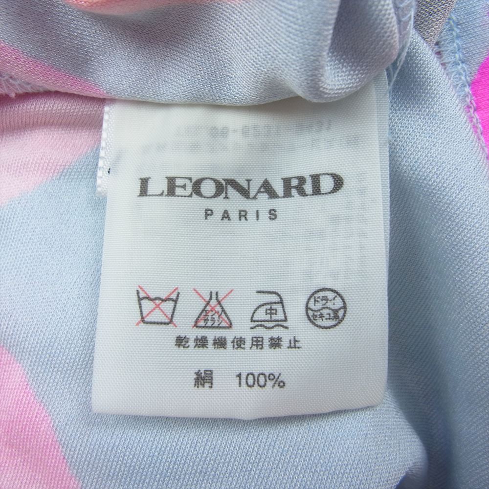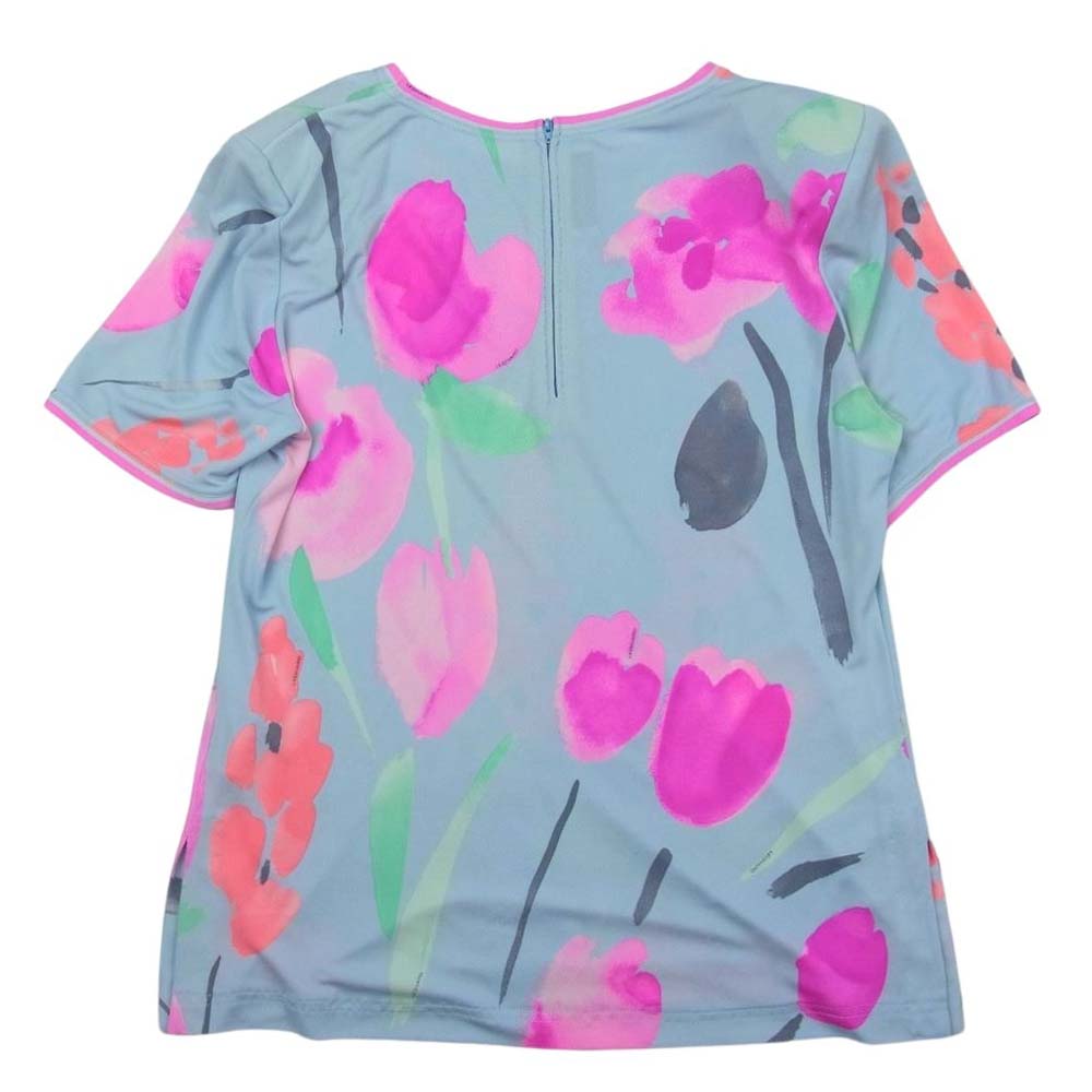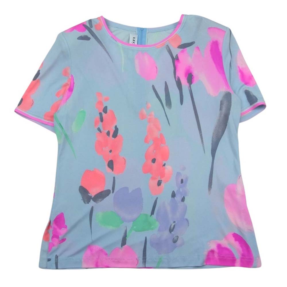 レオナールファッションパリス シルク 花柄 半袖 ブラウス Tシャツ 肩パッド ブルー系 42【中古】