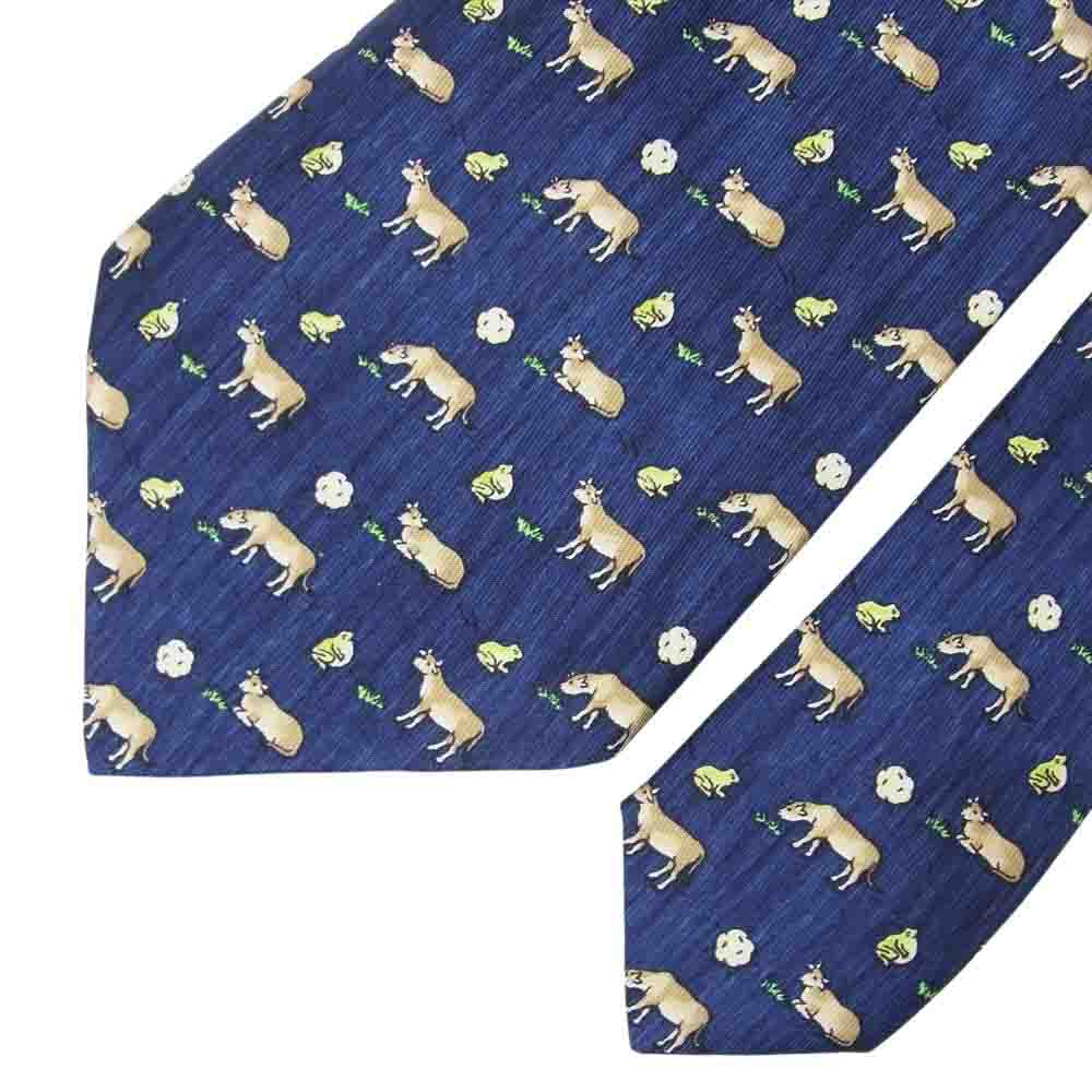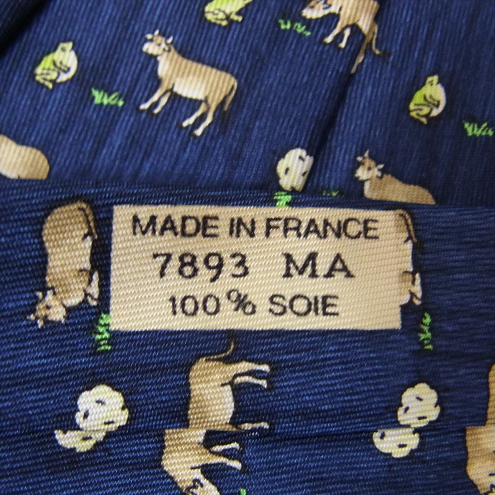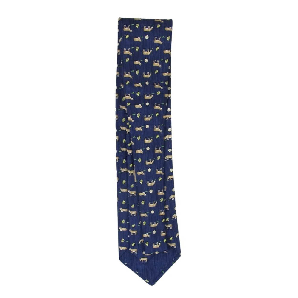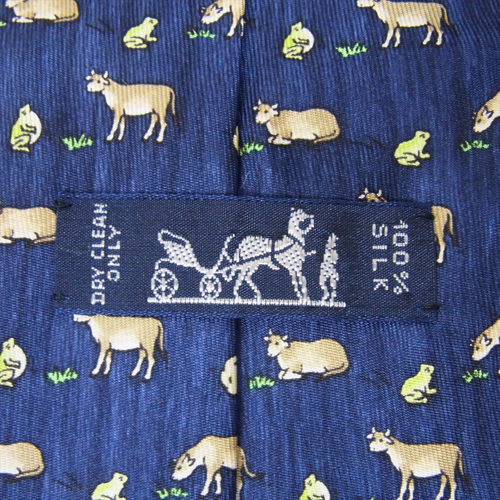 HERMES エルメス アニマル柄 ネクタイ シルク フランス製 総柄 ネイビー系【美品】【中古】