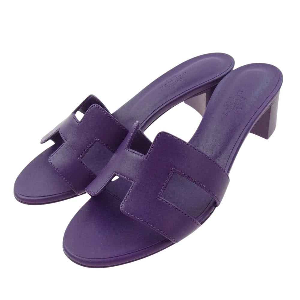 HERMES エルメス オアジス ヒール サンダル ミュール パープル系 36.5【新古品】【未使用】【中古】