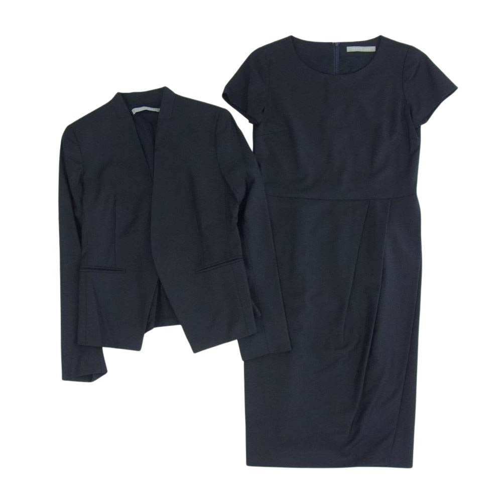 theory セオリー 03-9904120 theory luxe セオリーリュクス ノーカラー ジャケット セットアップ スーツ ブラック系 38【中古】
