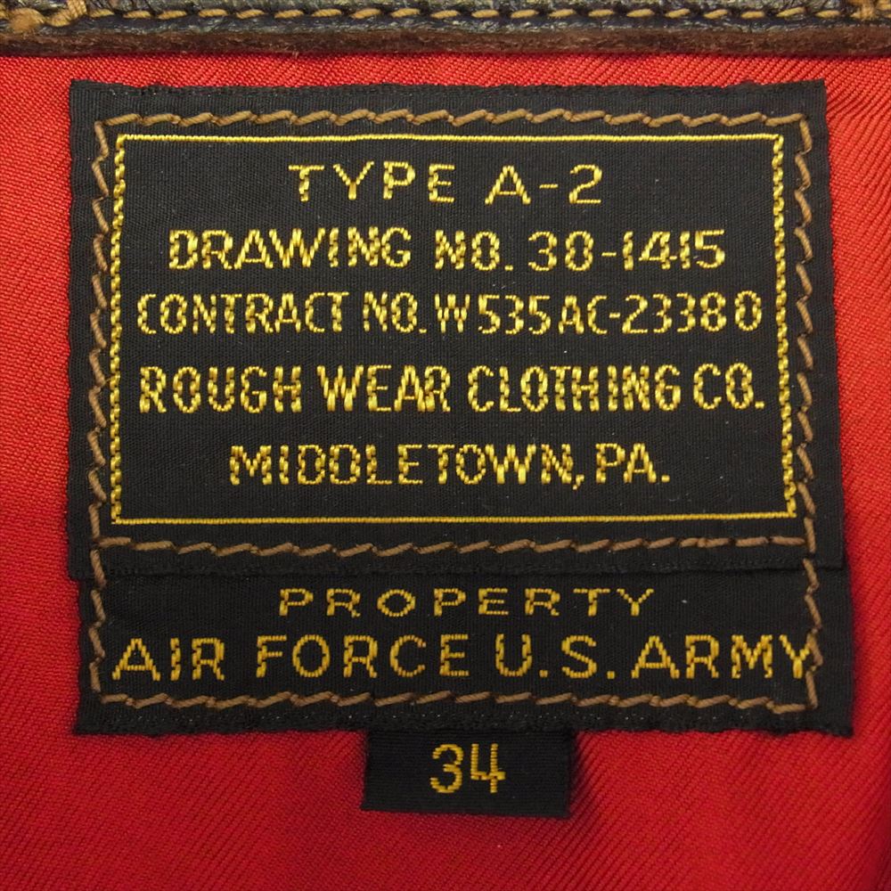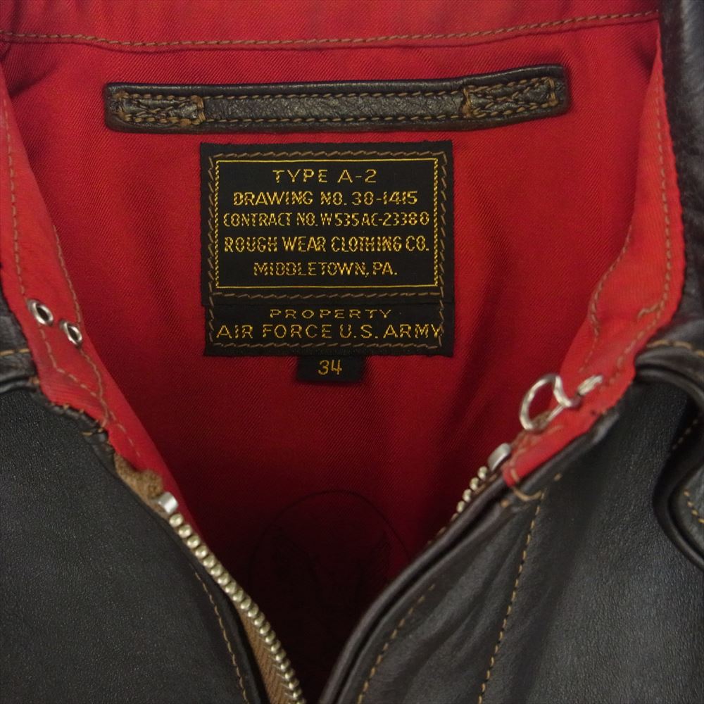 RAINBOW COUNTRY レインボーカントリー W535AC-23380 TYPE A-2 ROUGH WEAR ラフウェア 実名復刻 レッドシルク レザー フライト ジャケット ダークブラウン系 34【中古】