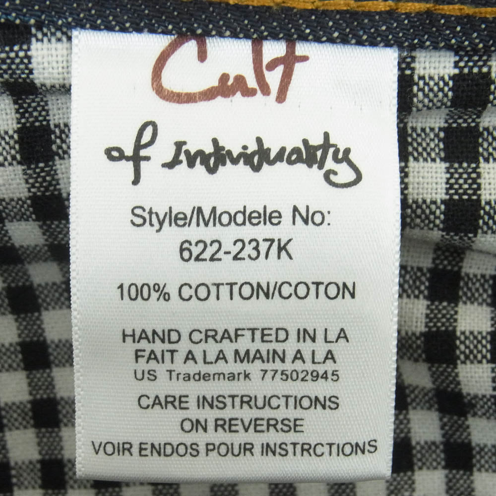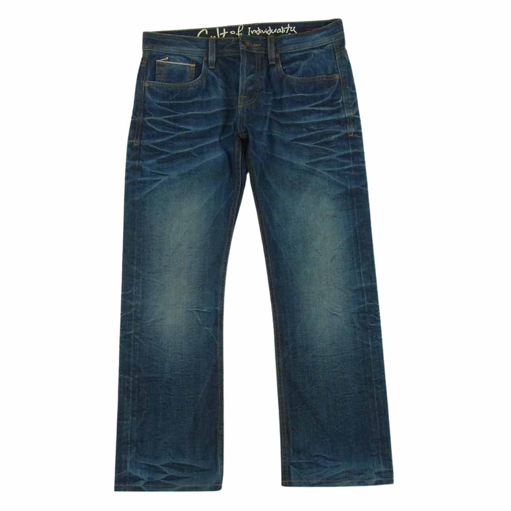 カルトオブインディビジュアリティ 622-237K ヴィンテージ加工 ストレート 5ポケット ボタンフライ デニム パンツ ジーンズ インディゴブルー系 W32 L34【中古】