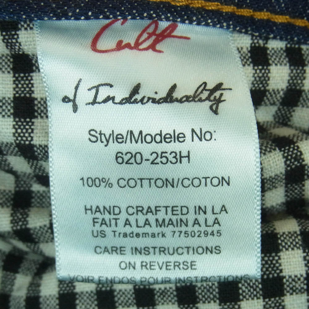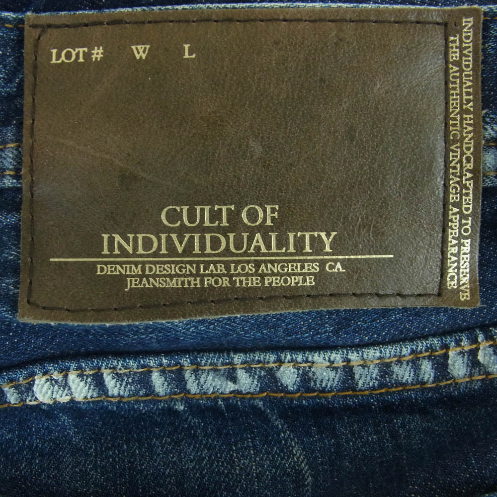 カルトオブインディビジュアリティ 620-253H ダメージ リペア加工 ストレート 5ポケット ボタンフライ レベルストレート WASH PLASTER デニム パンツ インディゴブルー系 W32 L34【中古】
