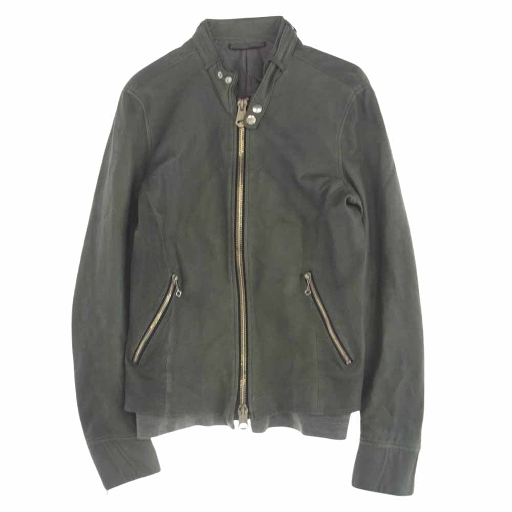 MIHARA YASUHIRO ミハラヤスヒロ 41431201 羊革 シングル レザー ライダース ジャケット グリーン系 46【中古】