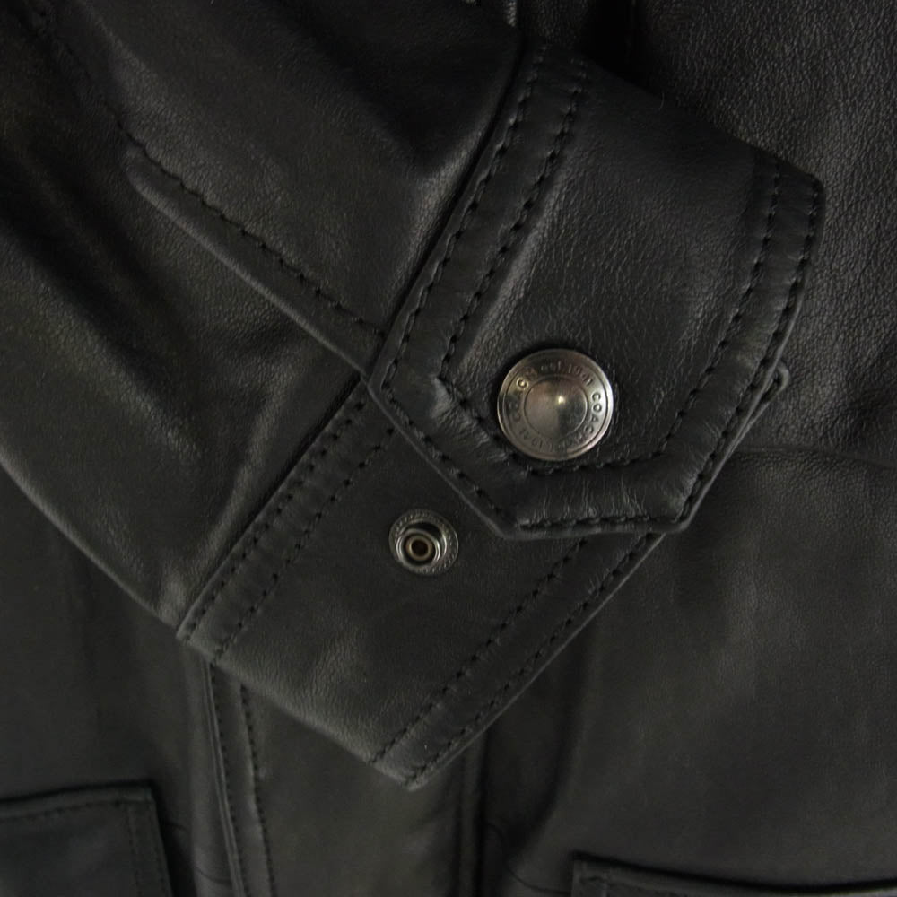 COACH コーチ スタンドカラー ラムレザー ジャケット 羊皮 L ブラック ブラック系 L【中古】