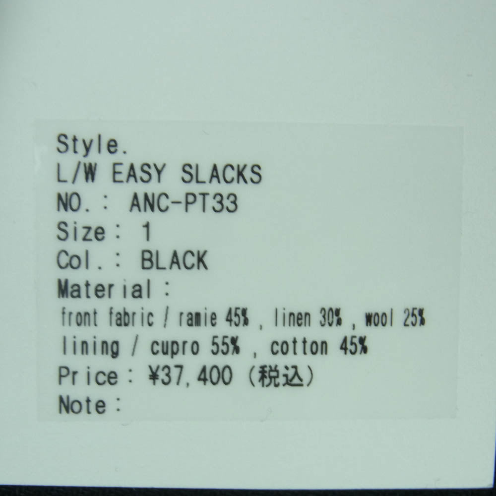 ANCELLM アンセルム 23AW ANC-PT33 L/W EASY SLACKS ネル スラックス パンツ 日本製 ブラック系 1【美品】【中古】