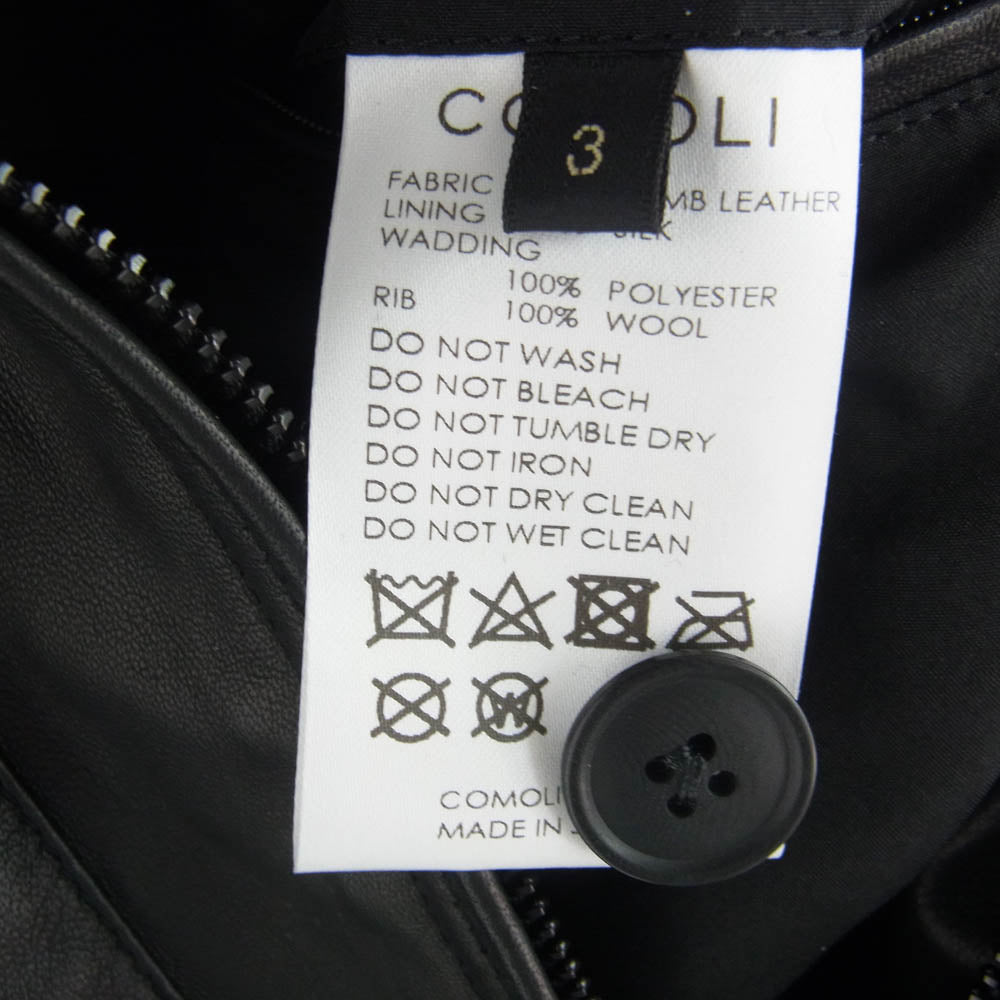 COMOLI コモリ 23AW Y03-04020 シープスキン G8 ジャケット 中綿 レザー ジャケット ブラック系 3【中古】