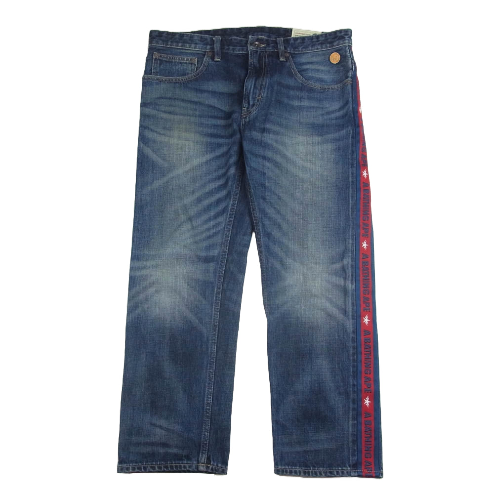 A BATHING APE アベイシングエイプ サイド ライン ロゴ バック 刺繍 Gパン デニム パンツ インディゴブルー系 XL【中古】