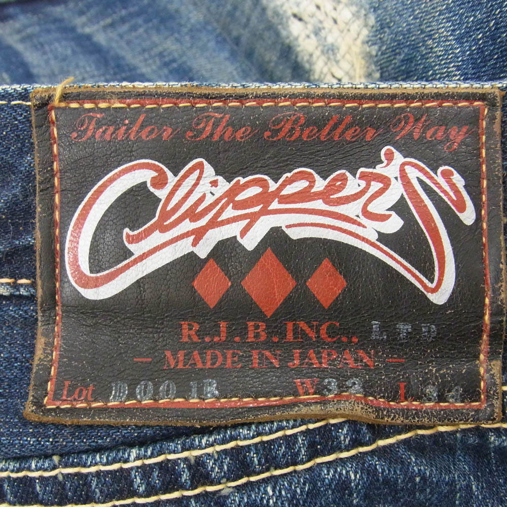 R.J.B アールジェイビー D001R ダイヤ ステッチ レザー ダメージ 加工 デニム パンツ インディゴブルー系 32【中古】
