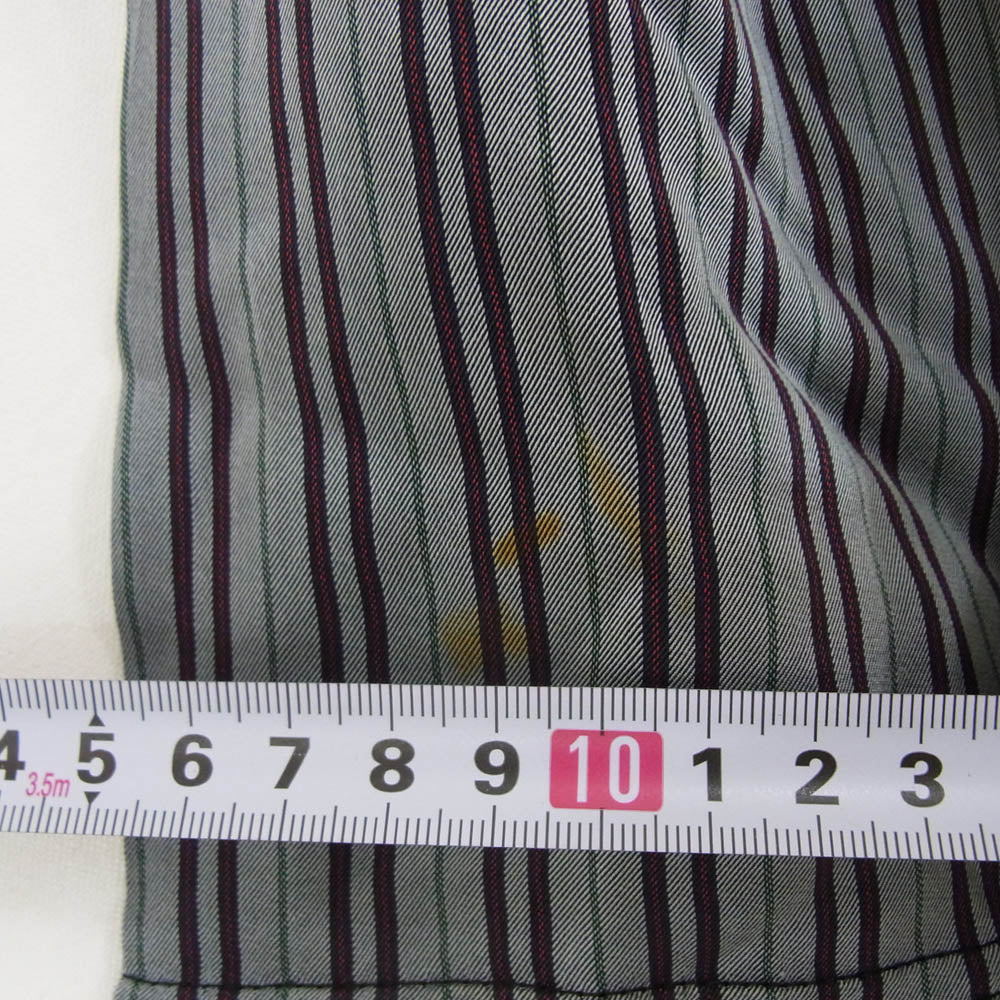 パンツ類に関しましては、ウエスト部分はそのアイテムの型通りのまま平らな場所に置いて採寸しております。実際に着用される際のウエストサイズとは若干の差が出ることがありますので、ご了承下さいませ。
