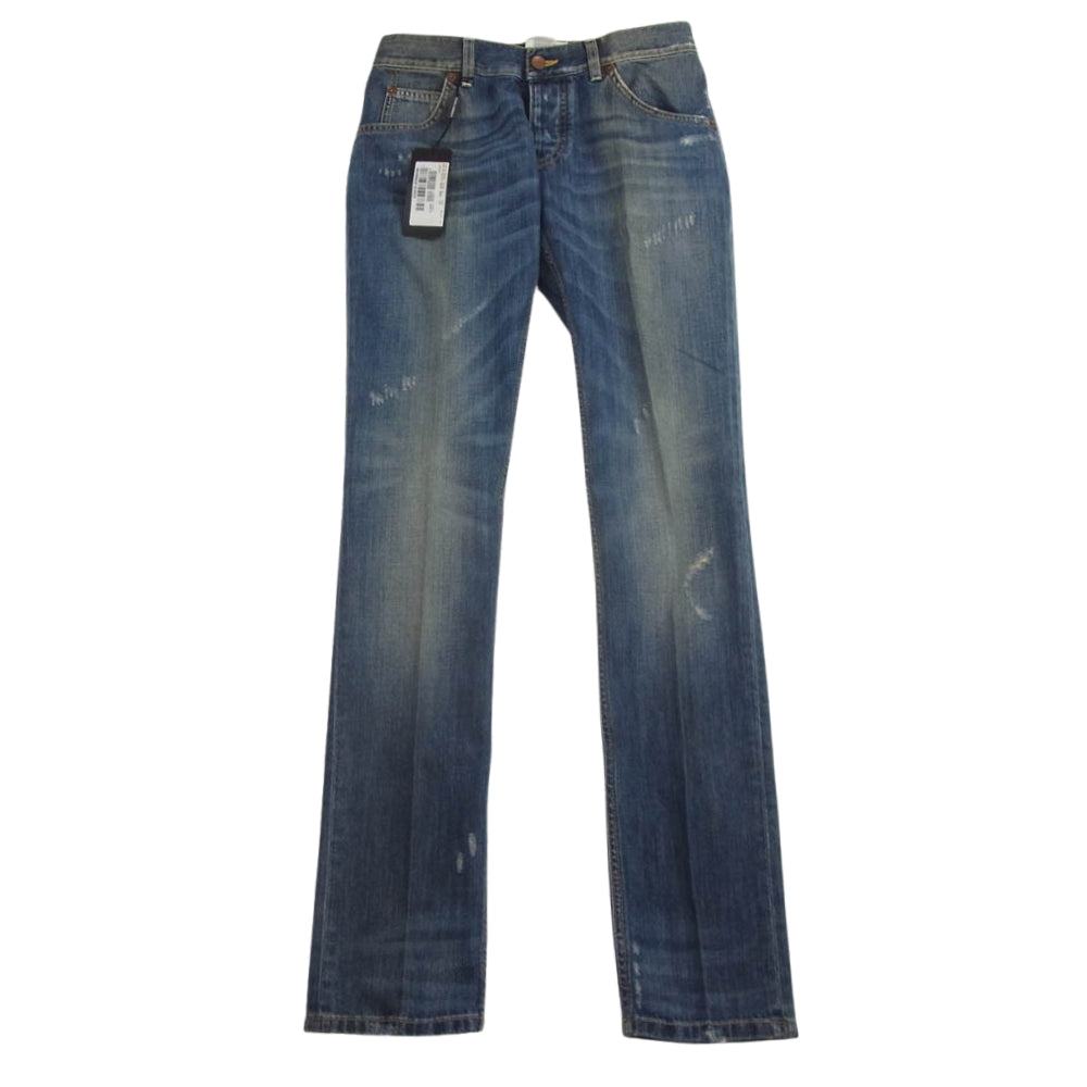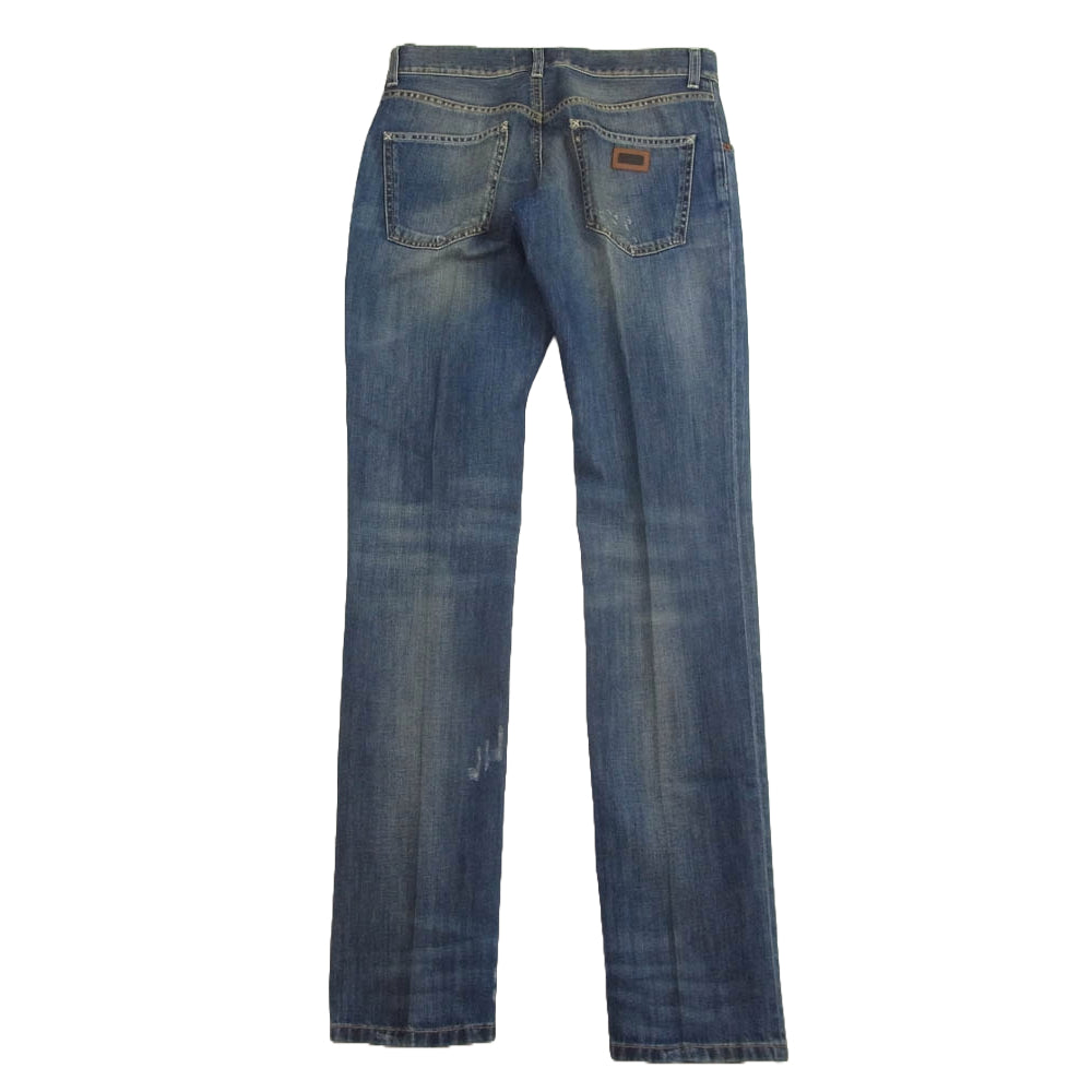 DOLCE&GABBANA ドルチェアンドガッバーナ G31YLP ヴィンテージ ダメージ 加工 ロゴ メタル プレート インディゴ デニム パンツ インディゴブルー系 44【極上美品】【中古】