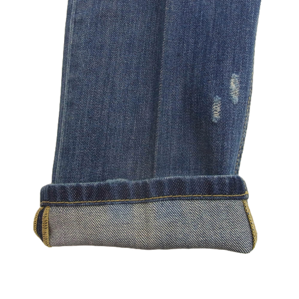 | 商品名 | G31YLP ヴィンテージ ダメージ 加工 ロゴ メタル プレート インディゴ デニム パンツ |