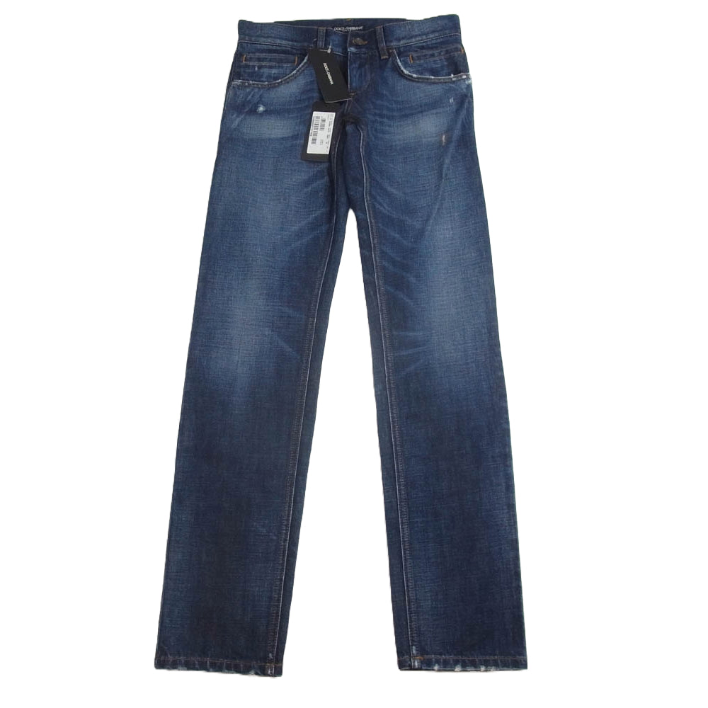 DOLCE&GABBANA ドルチェアンドガッバーナ GZN9BD ヴィンテージ ダメージ 加工 ロゴ 隠し メタル プレート インディゴ デニム パンツ インディゴブルー系 44【新古品】【未使用】【中古】
