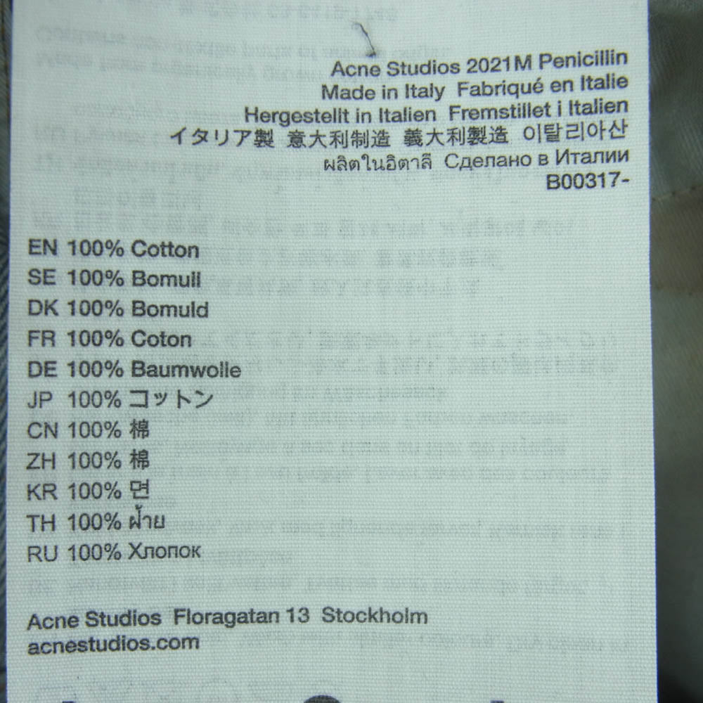 ACNE STUDIOS アクネストゥディオズ B00317 2021M Penicillin ペニシリン ダメージ加工 ルーズフィット ジーンズ デニム パンツ インディゴブルー系 30 / 32【中古】