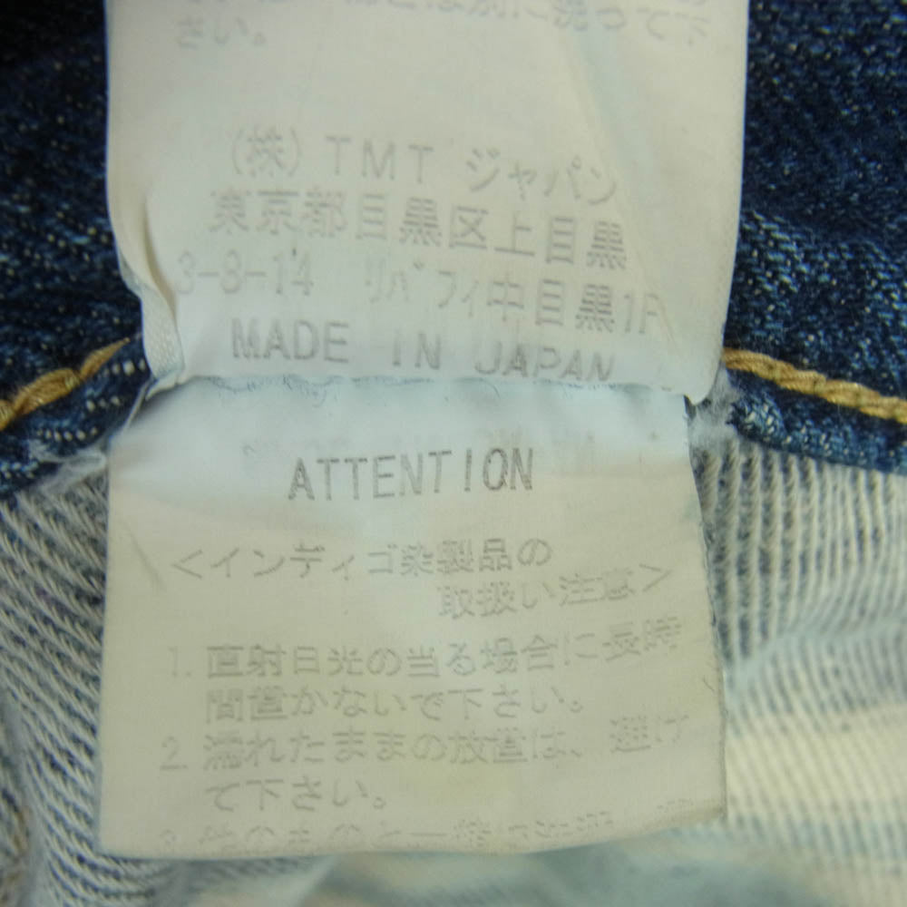 TMT ティーエムティー ボタンフライ セルビッチ ストレート デニム パンツ 日本製 インディゴブルー系 M 30【中古】