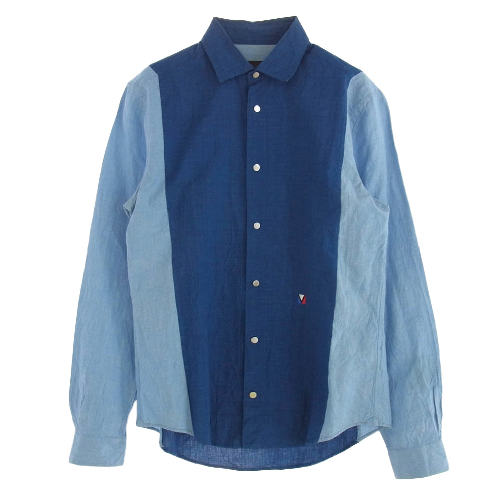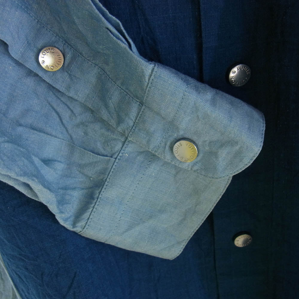 LOUIS VUITTON ルイ・ヴィトン デニム シャンブレー バイカラー 長袖 シャツ インディゴブルー系 ライトブルー系 L【中古】