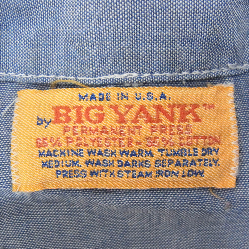 BIG YANK ビッグヤンク 70s 長袖 ワーク シャツ ブルー系 サイズ表記無【中古】