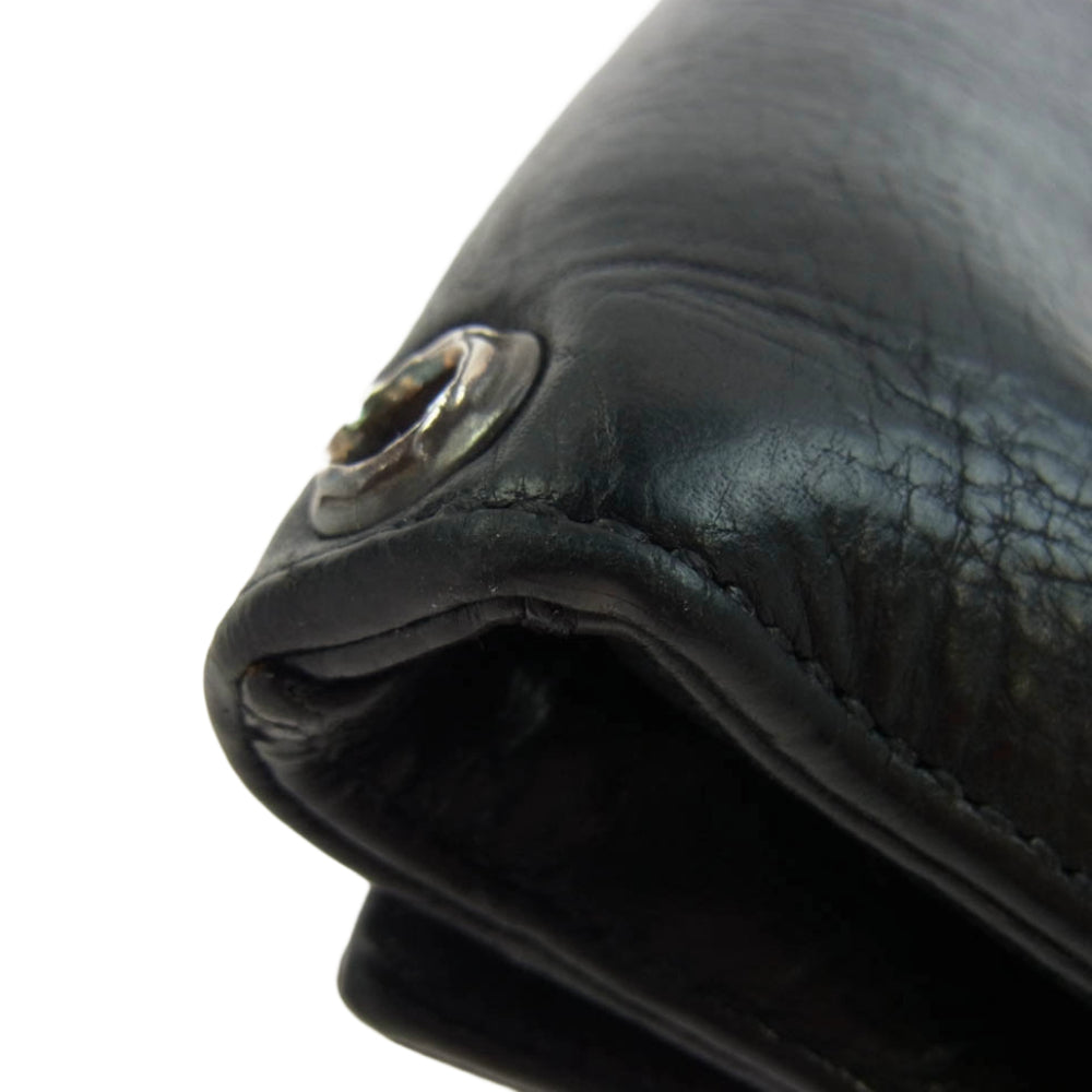 CHROME HEARTS クロムハーツ(原本無) 3FOLD 3フォールド ウォレット フレアボタン レザー ブラック系【中古】
