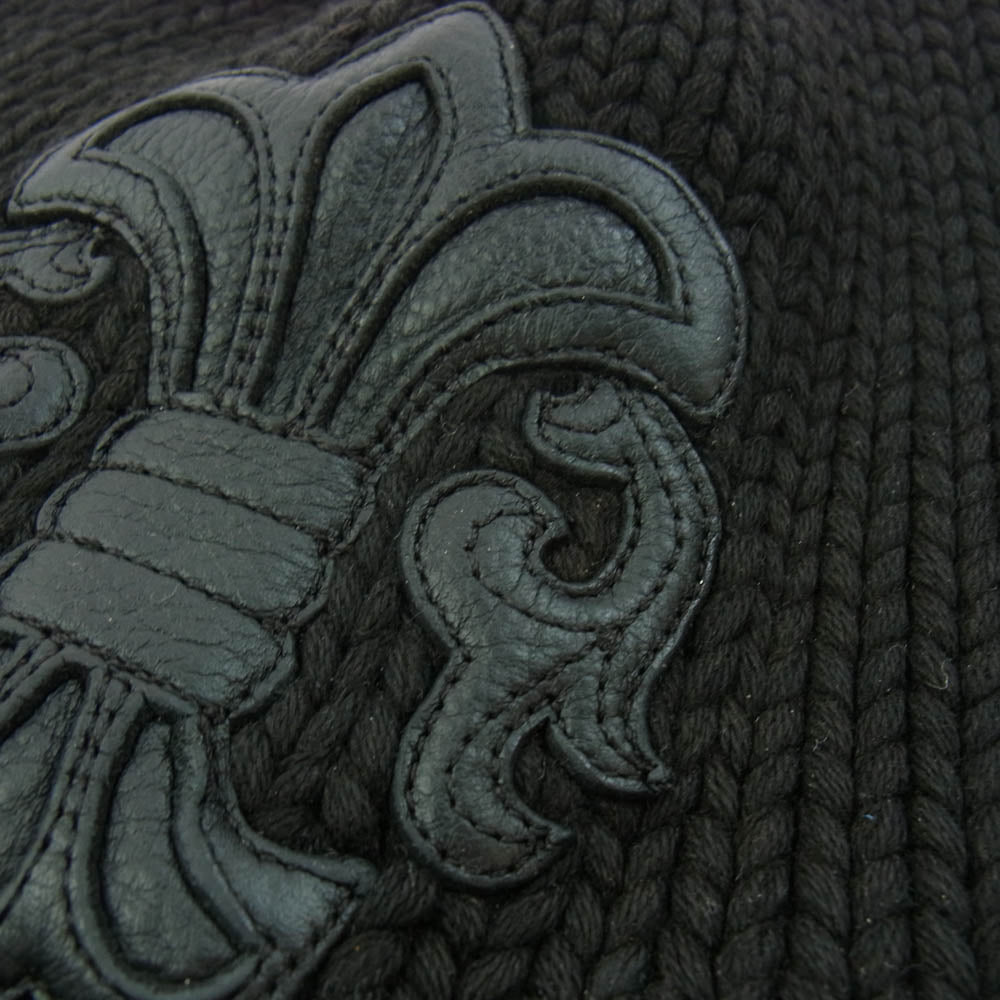 CHROME HEARTS クロムハーツ(原本無) BS FLARE BEANIE BSフレア レザーパッチ BSフレアボタン付 コットン ニット ビーニー ブラック系【中古】