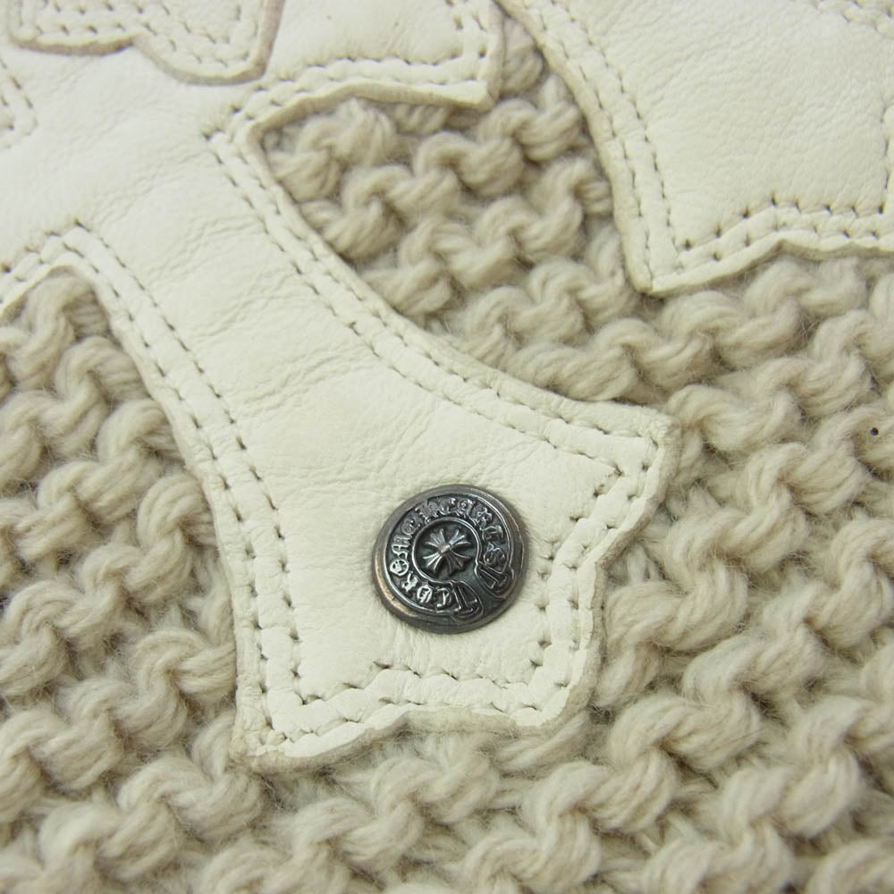 CHROME HEARTS クロムハーツ(原本無) SCARF FRNGD HNDKNT CEM レザー セメタリークロスパッチ付き カシミヤ フリンジ マフラー ストール スカーフ オフホワイト系 ベージュ系【中古】
