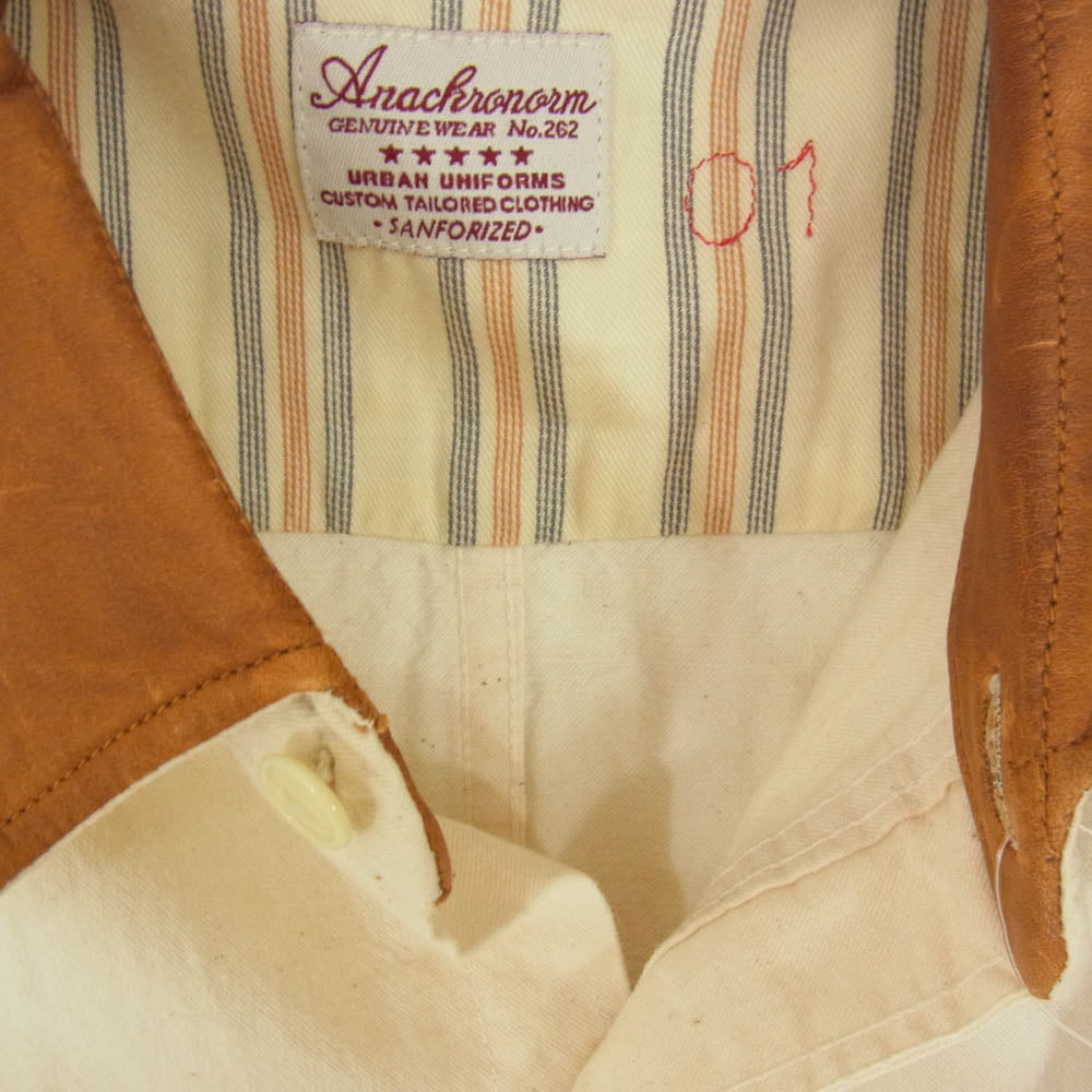 アナクロノーム レザー切替 長袖 シャツ オフホワイト系 01【中古】