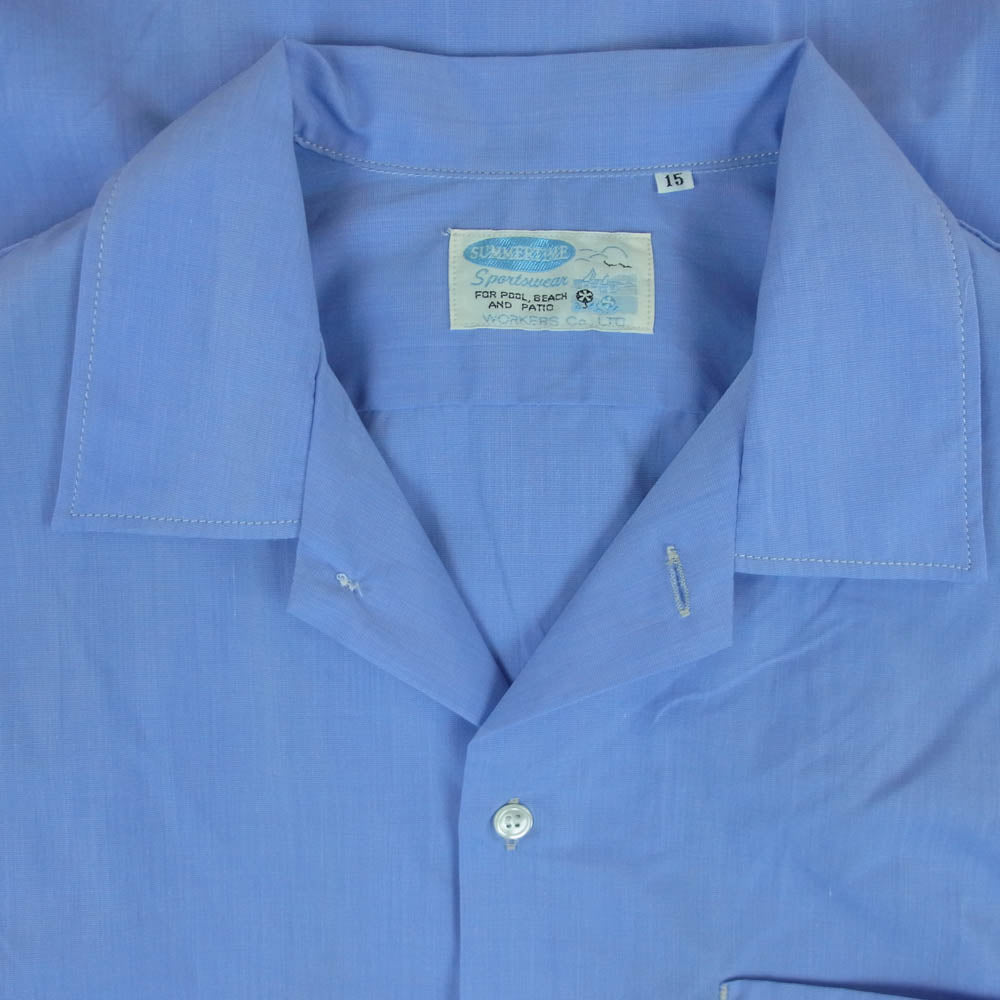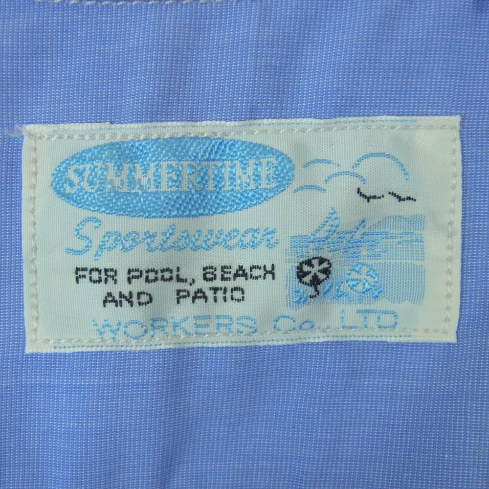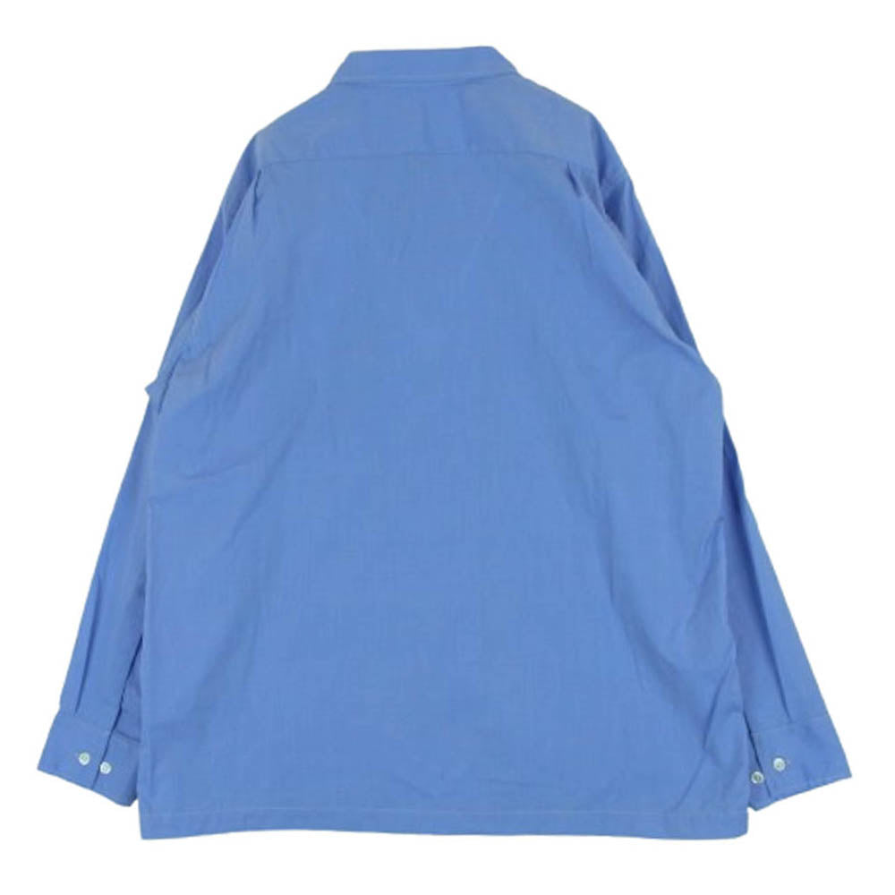ワーカーズ Open Collar Shirt Broadcloth オープンカラー 長袖 シャツ コットン 日本製 ブルー系 15【中古】