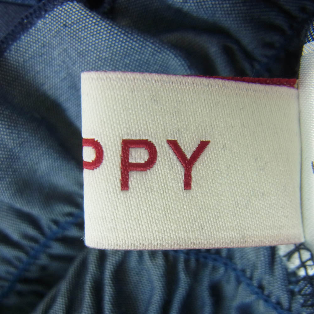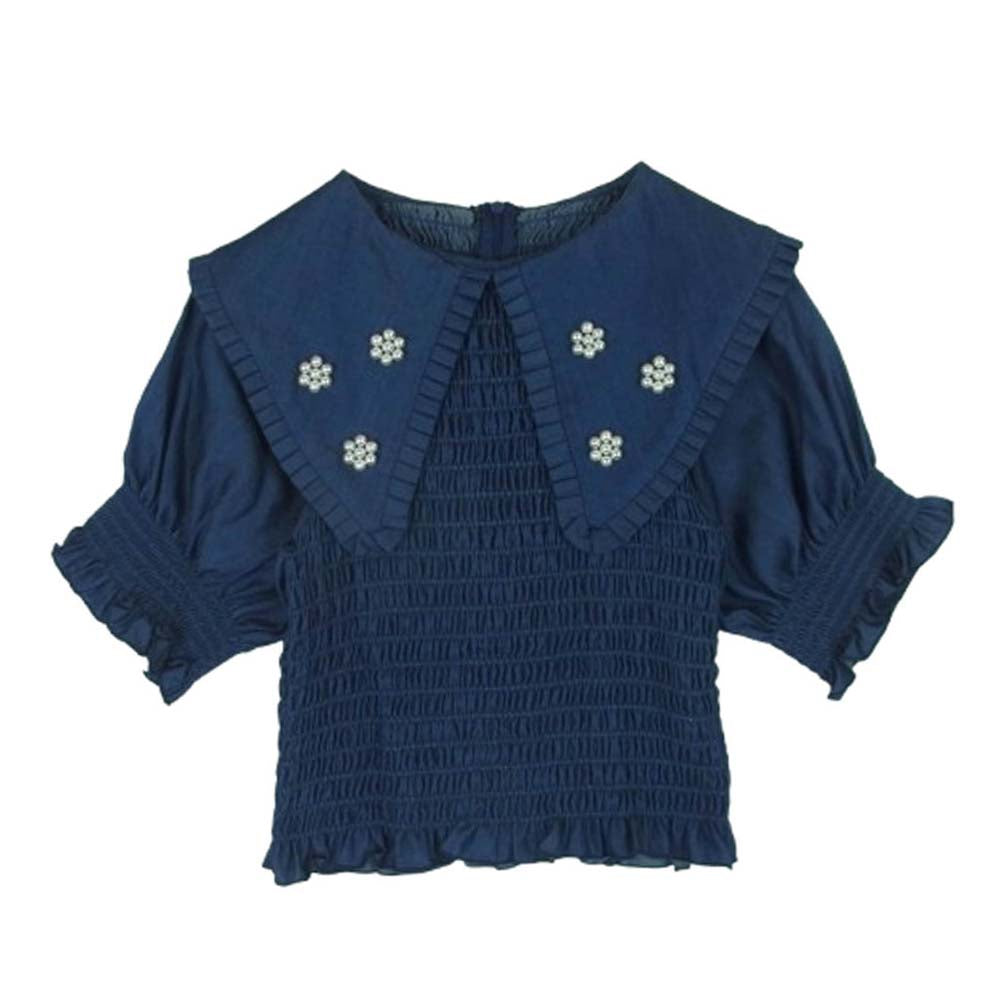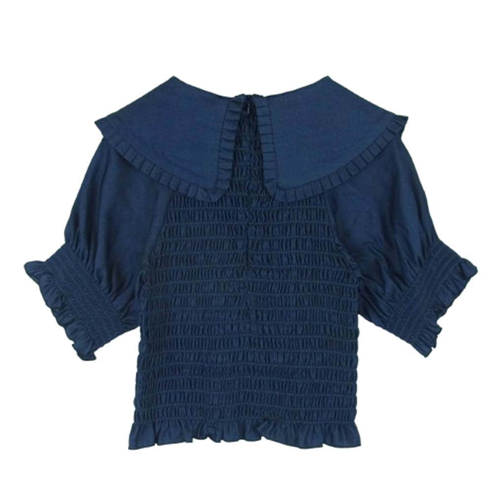ポピー セーラーカラー ビッグカラー ギャザー ハーフスリーブ トップス ブラウス 韓国製 ネイビー系 F【中古】