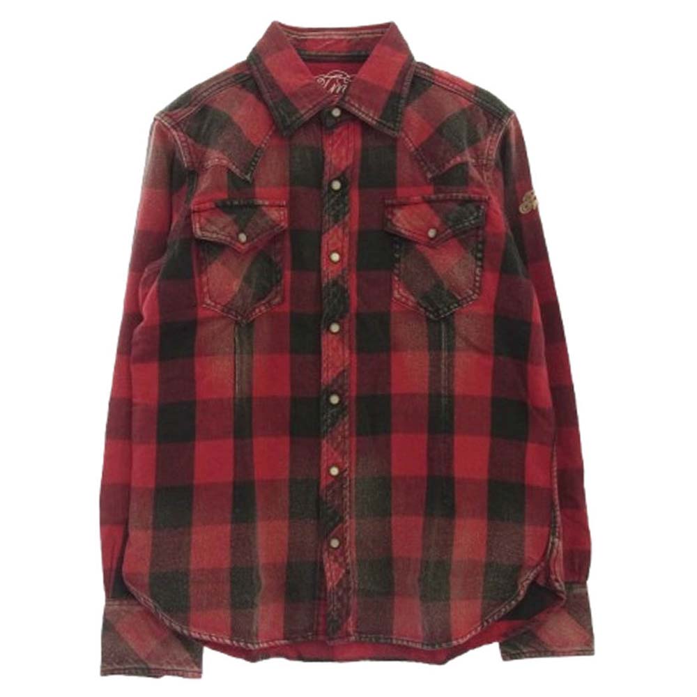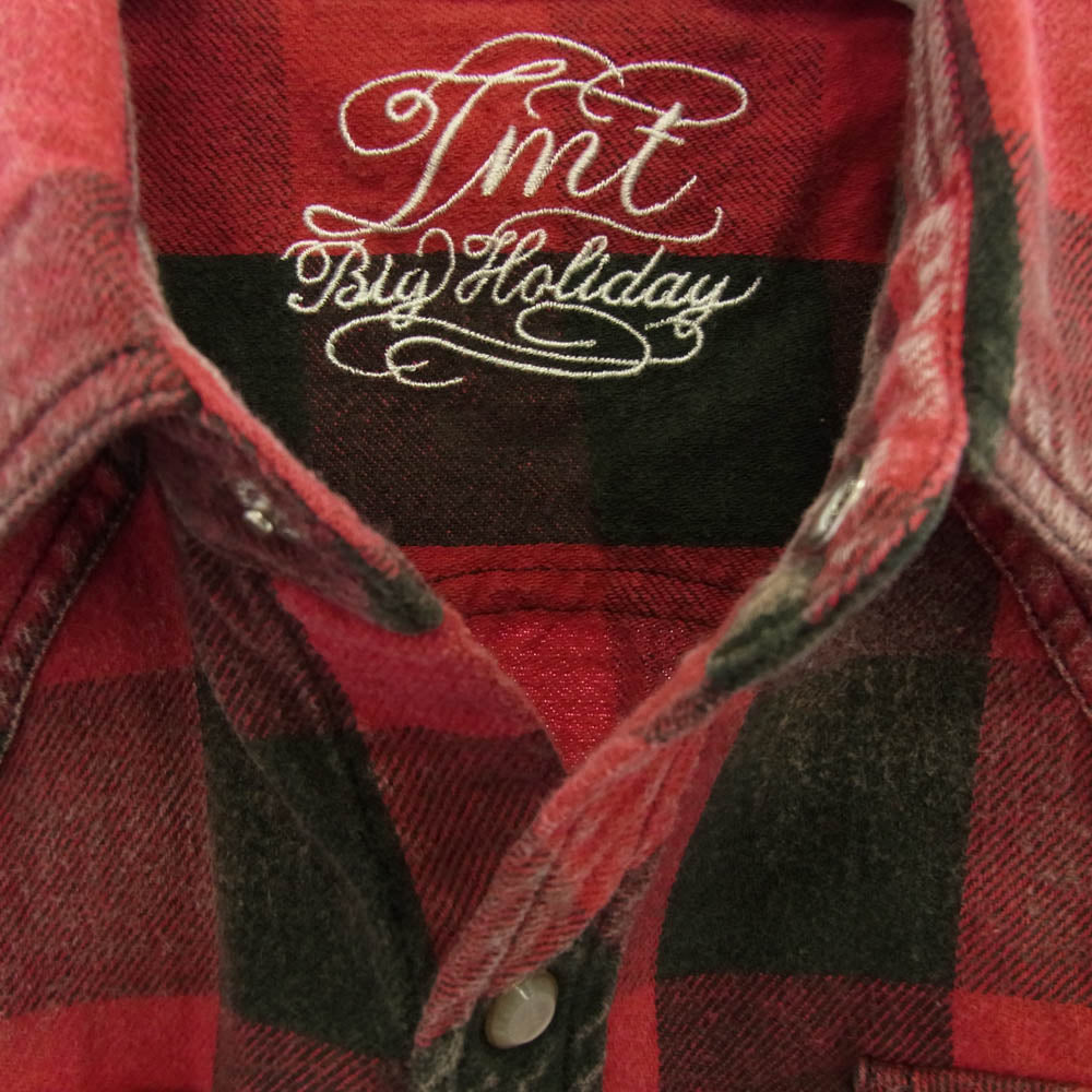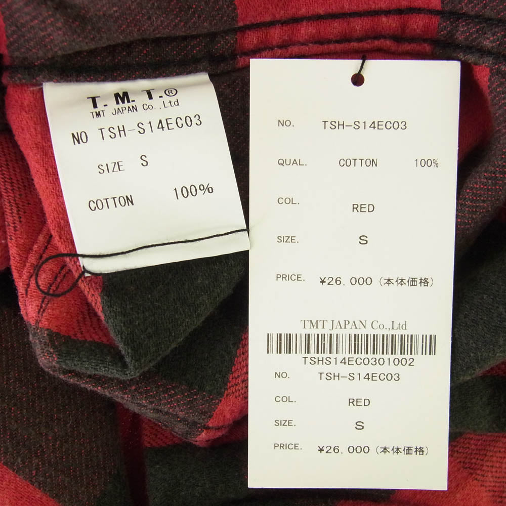TMT ティーエムティー TSH-S14EC03 チェック柄 ボタンダウン コットン 長袖 シャツ レッド ブラック系 レッド系 S【美品】【中古】