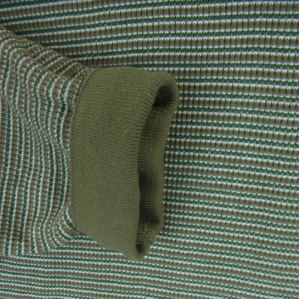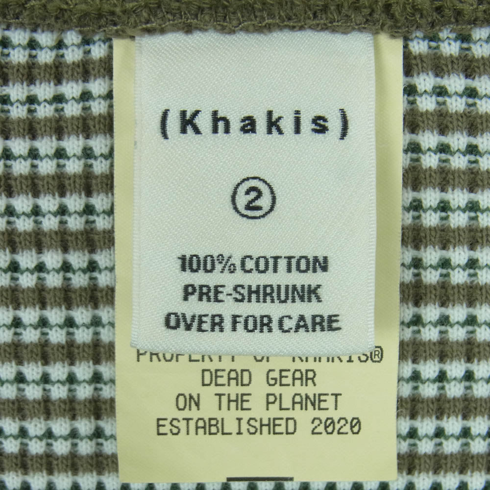 カーキス 1LDK WAFFLE HENLEY L/S TEE ワッフル ヘンリー ボーダー 長袖 Tシャツ グリーン系 カーキ系 XL【中古】