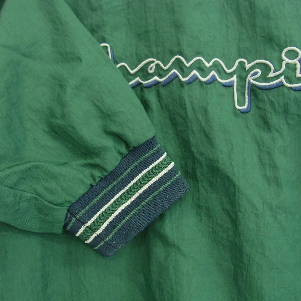 Champion チャンピオン 90's 00s V NECK ロゴ 刺繍 プルオーバー ナイロン ジャケット アノラック グリーン XL グリーン系 XL【中古】