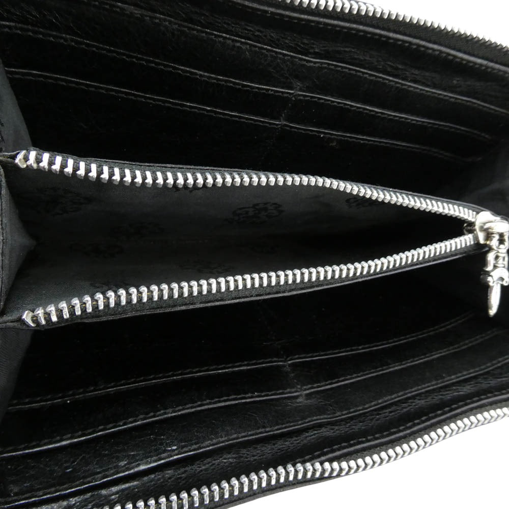 CHROME HEARTS クロムハーツ(原本無) REC F ZIP ゼロピラミッドスタッズコーナー ラウンドジップ レザー ウォレット 財布 ブラック系 シルバー系【中古】