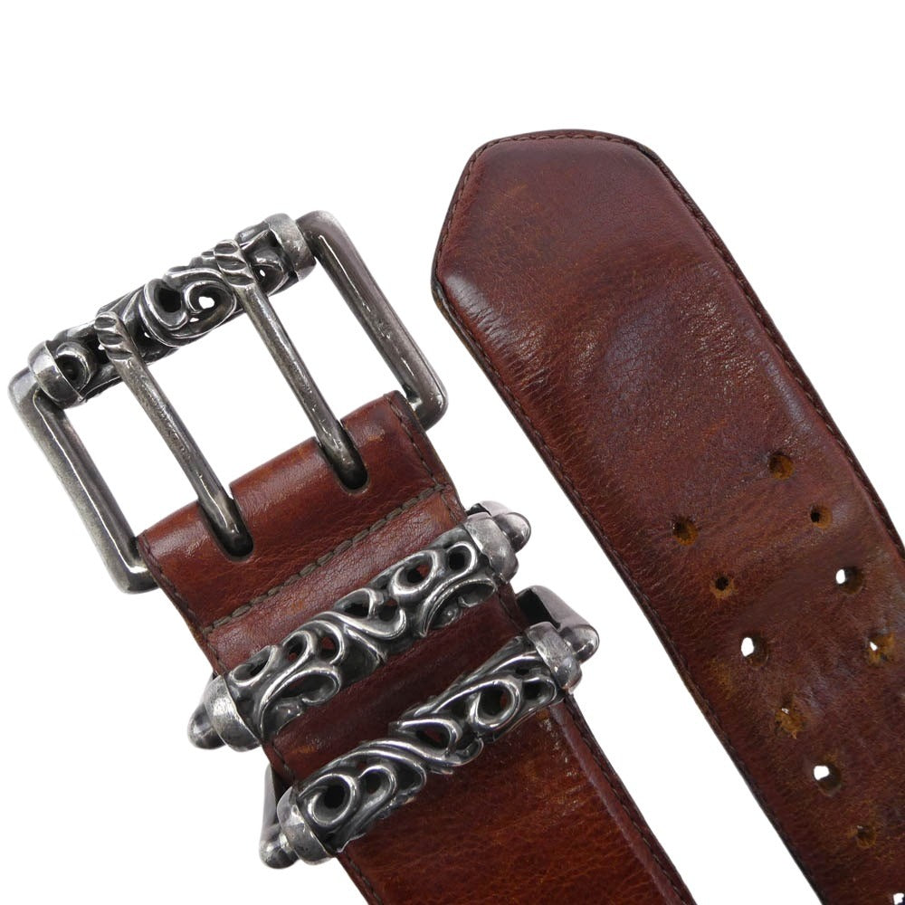 CHROME HEARTS クロムハーツ(原本無) BLT ROLLER 3PC 1.5inch 3ピース ローラー レザーベルト ブラック系 36【中古】