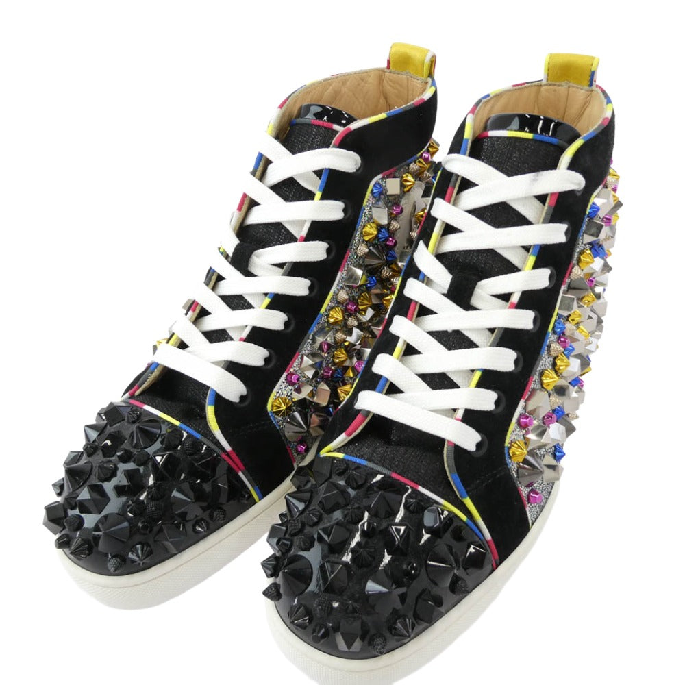 Christian Louboutin クリスチャンルブタン REMIX FLAT PAT スパイク スタッズ ハイカットスニーカー マルチカラー系 ブラック系 40【中古】