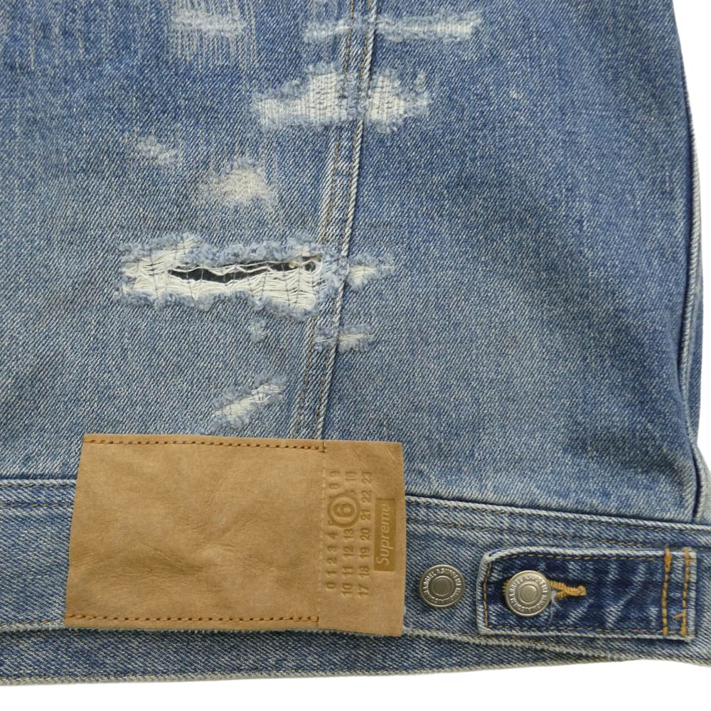 Supreme シュプリーム 26SS x MM6 Maison Margiela エムエムシックス メゾンマルジェラ Distressed Selvedge Denim Trucker Jacket ディストレスド セルビッジ デニム トラッカー ジャケット インディゴブルー系 US M【極上美品】【中古】