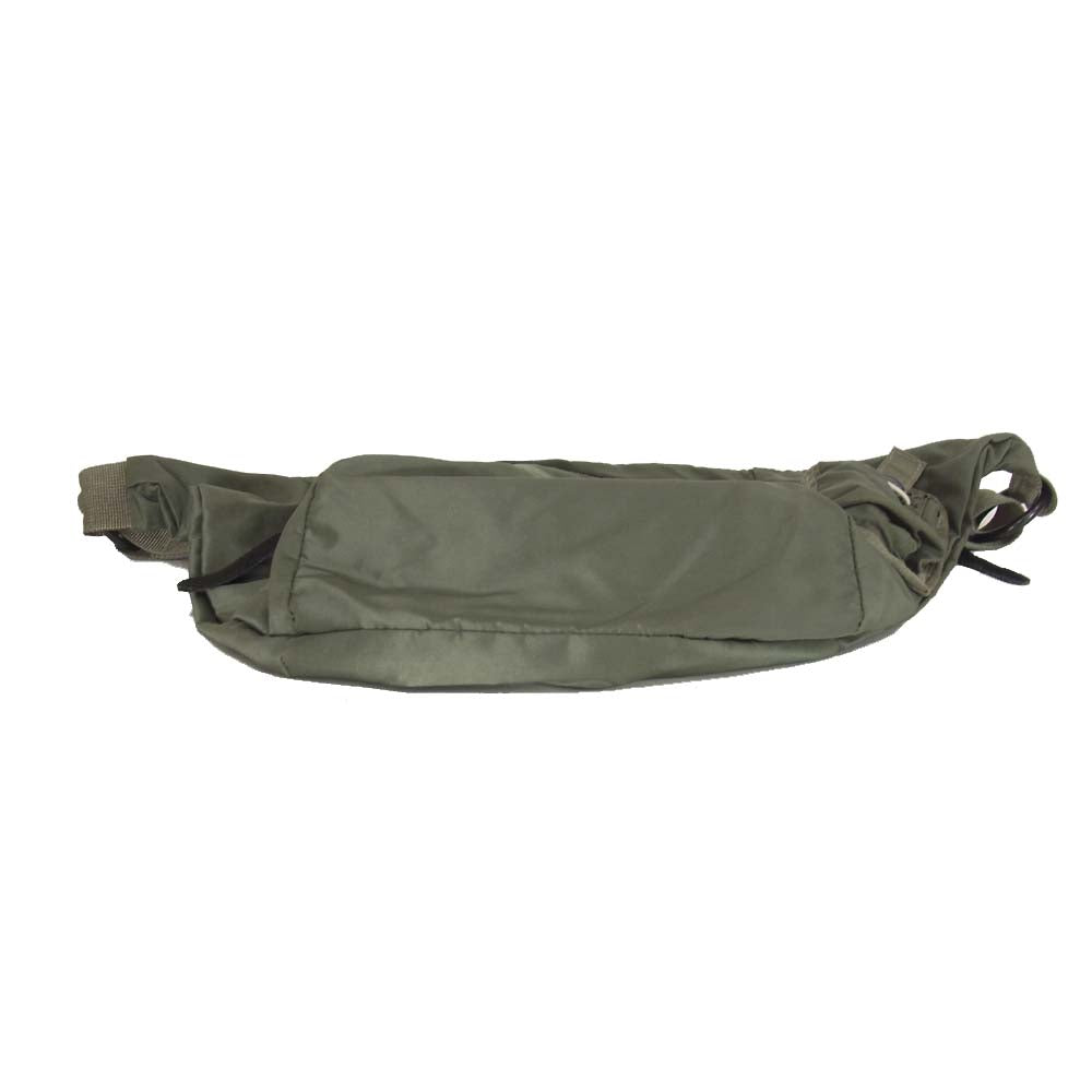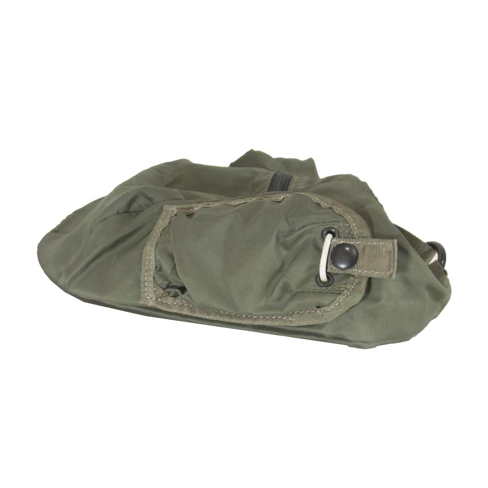 | 張りのある固めのナイロン系素材で重量感あります。 通常の使用感ございますがまだまだお使い頂けるオススメ商品です。 カーキでどんなコーデにも合わせやすい万能アイテムです!オールシーズンお使い頂けるオススメ商品です。 |