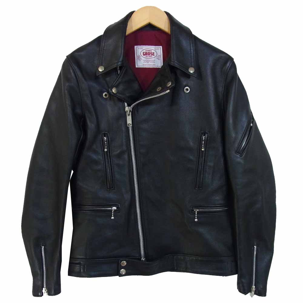 ジェームスグロース 英国製 マニラ 牛革 カウハイド レザー ダブルライダース ジャケット ブラック系 36【美品】【中古】