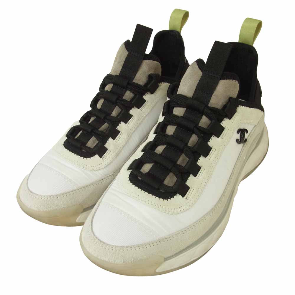 CHANEL シャネル G35617 ベルベット カーフスキン CC ココマーク スニーカー オフホワイト系 36【中古】