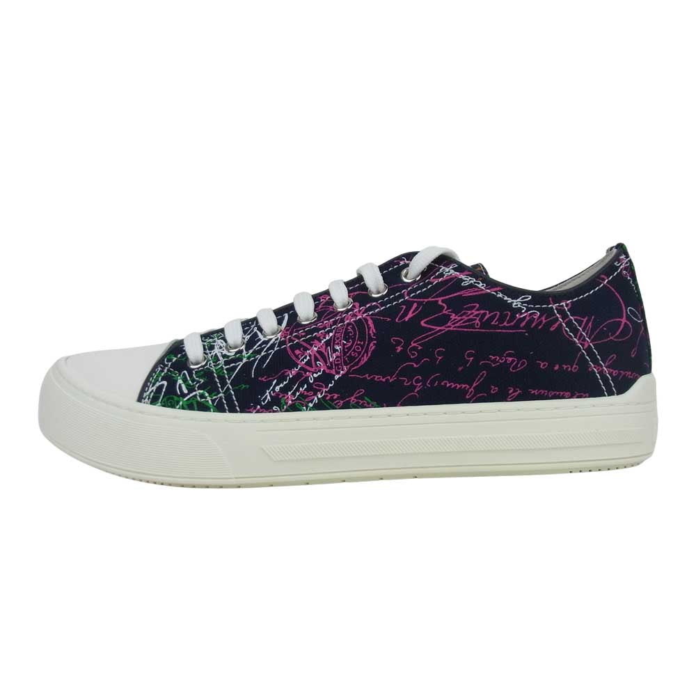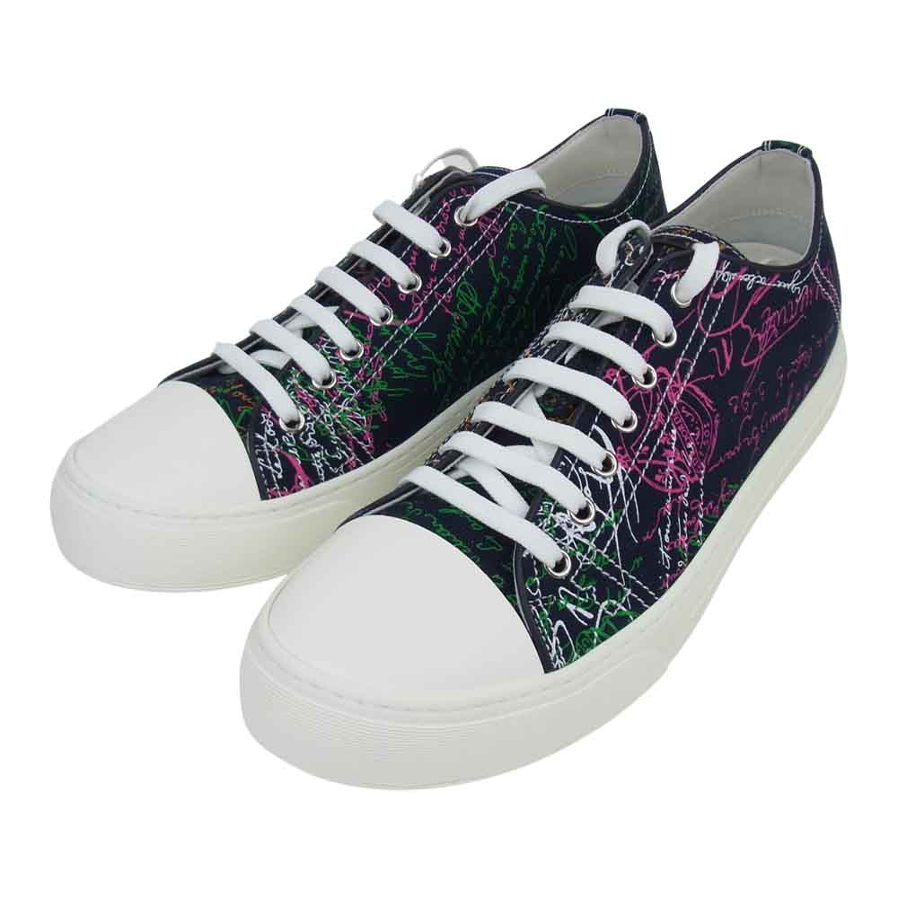 Berluti ベルルッティ S5035-001 PLAYGROUND プレイグラウンド スクリットキャンバス ローカット スニーカー ネイビー系 8【新古品】【未使用】【中古】