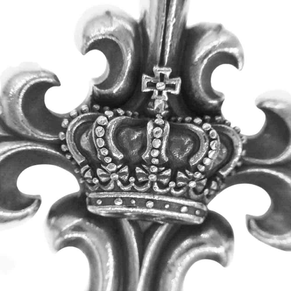 | ジャスティンデイビスの大きなサイズが特徴的なペンダントトップ です。中央には定番の王冠モチーフが配置されクロスを豪華に演出しています。商品状態も比較的良好のおすすめアイテムです。 |